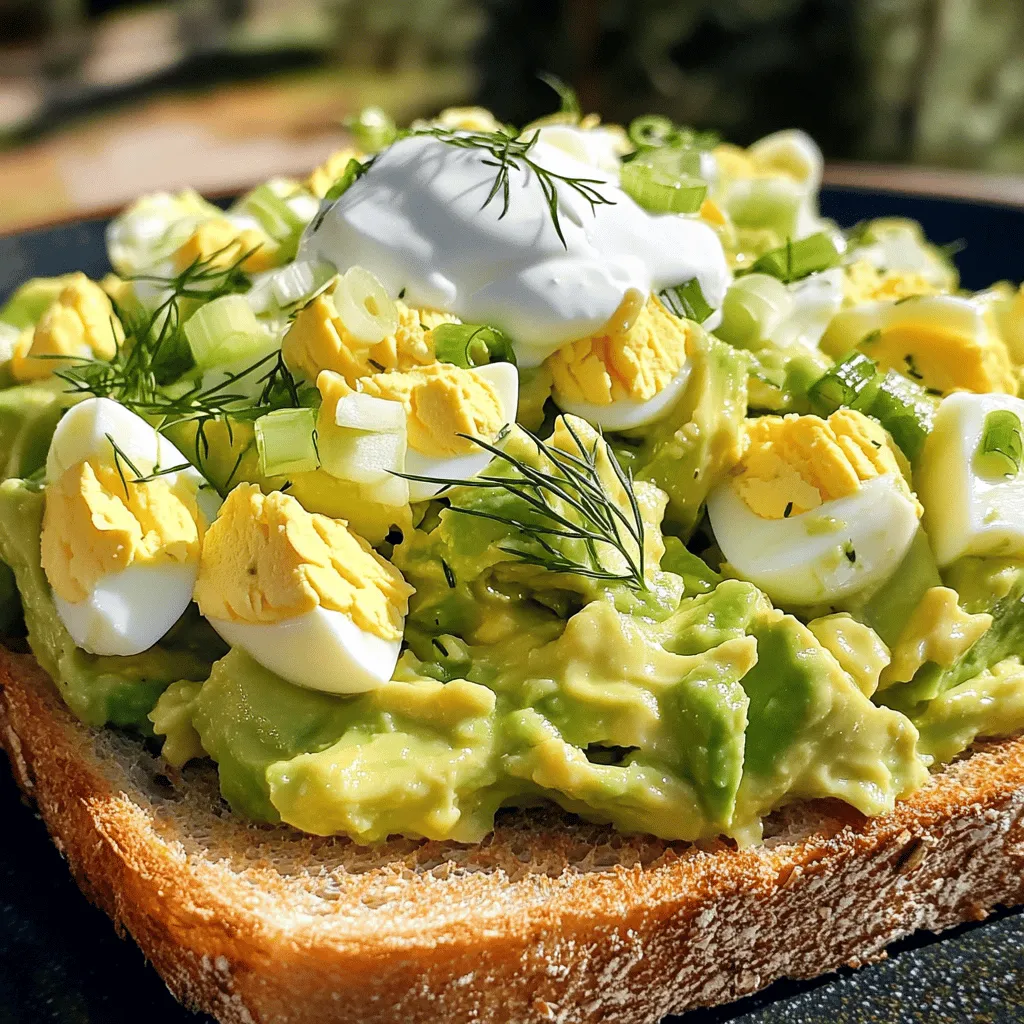 Gather these fresh ingredients to make a creamy avocado egg salad that is both tasty and healthy. The ripe avocado brings a smooth texture, while the eggs add protein. Greek yogurt gives it a nice creaminess. Dijon mustard adds a hint of zing, and lemon juice brightens the flavors. Fresh dill and green onion give it a burst of freshness.
