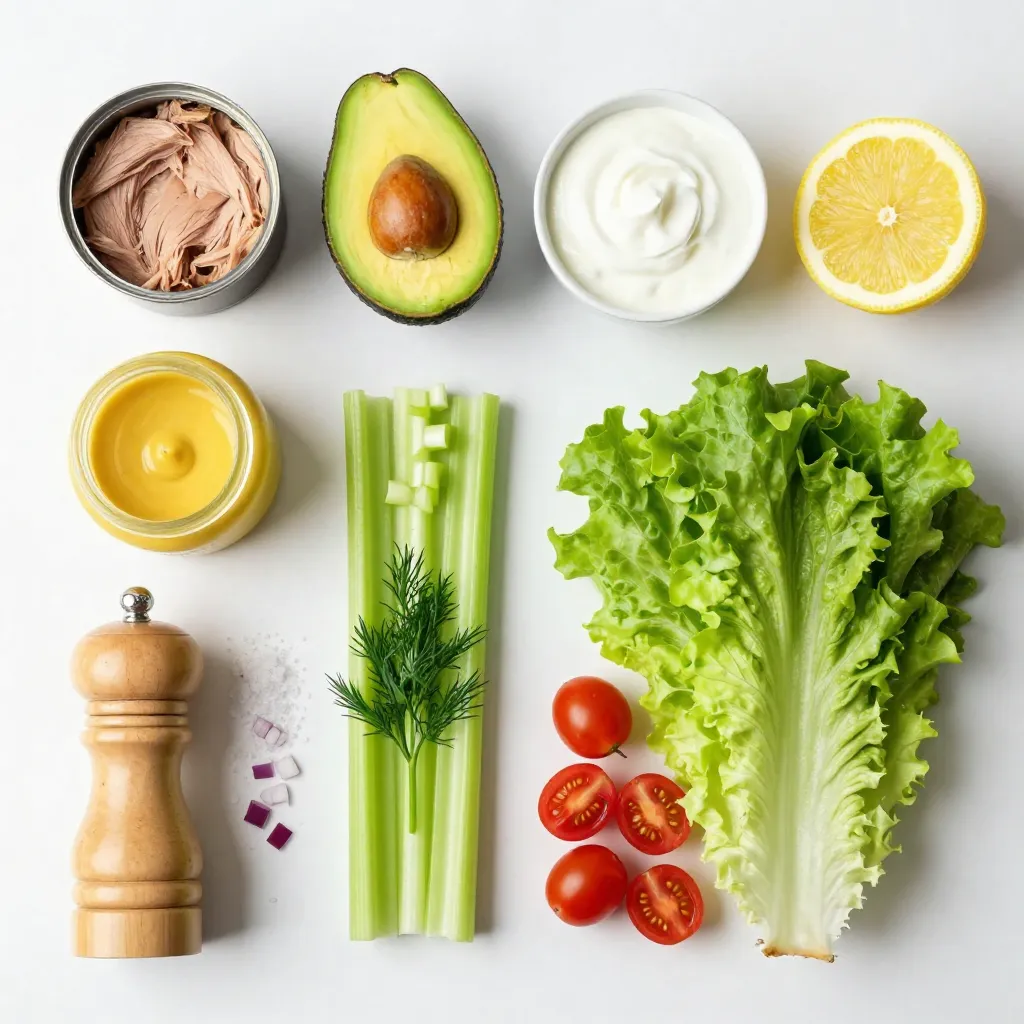 To make avocado tuna salad lettuce wraps, start by gathering your ingredients. In a mixing bowl, add one can of drained tuna and one ripe, mashed avocado. Mix these two until they blend well. Next, add 1/4 cup of Greek yogurt or mayo, 1 tablespoon of Dijon mustard, and 1 tablespoon of lemon juice. Stir everything together until the mixture is smooth.