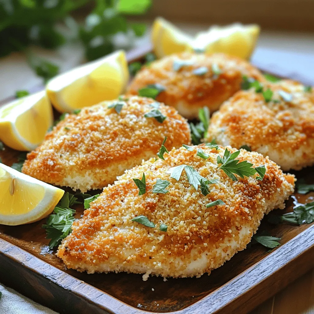Pair your Baked Parmesan Crusted Chicken with sides like mashed potatoes or steamed veggies. A fresh salad also works well. For a nice touch, serve the chicken on a wooden platter. Add lemon wedges and a sprinkle of extra Parmesan on top. It looks great and enhances the meal.