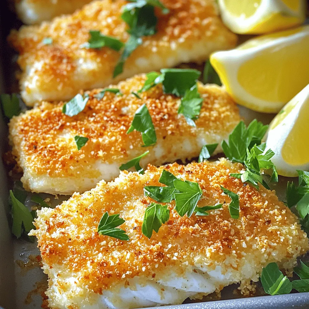 These ingredients create a tasty crust that enhances the tilapia flavor. The Parmesan cheese gives a rich taste, while the breadcrumbs add crunch.