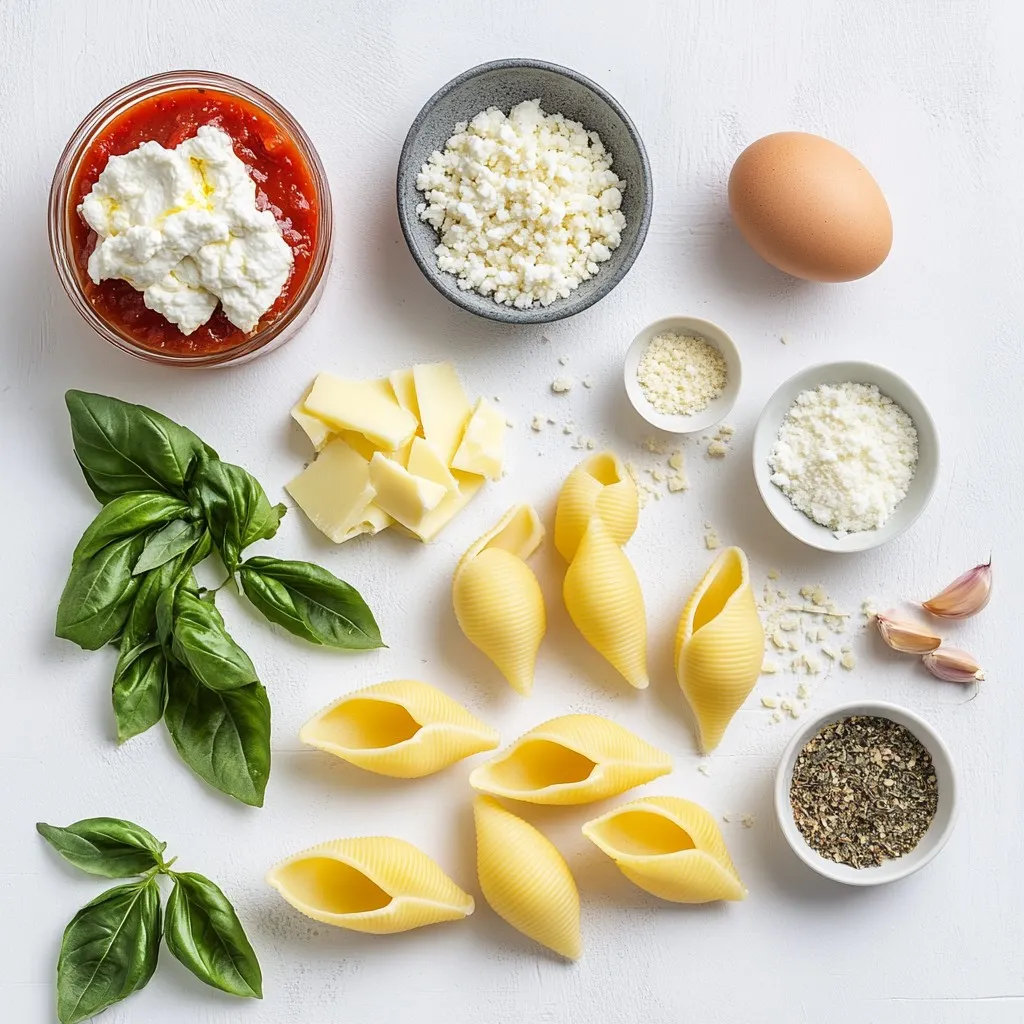 For this dish, we use jumbo pasta shells. These shells hold the filling well. The ricotta cheese gives a creamy texture. Cooked spinach adds a fresh taste and color. I love using both mozzarella and Parmesan for great flavor. The beaten egg helps bind everything together. Garlic adds depth, while dried herbs enhance the taste.
