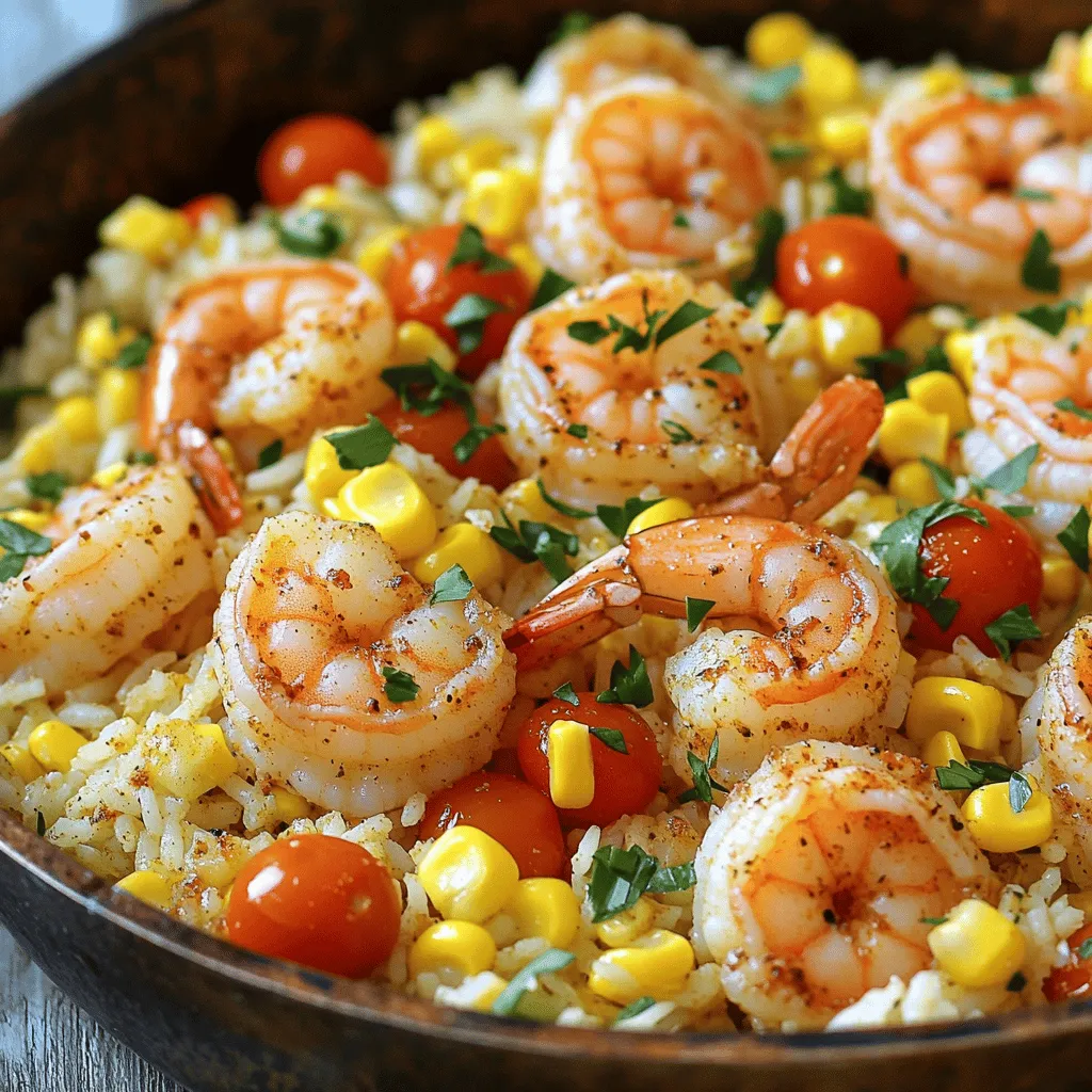 Each ingredient plays a key role in the flavors of this dish. The shrimp bring protein, while the rice absorbs the broth and spices. Onions and bell peppers add sweetness and crunch. Garlic enhances the flavor, and Cajun seasoning packs a punch. Smoked paprika adds depth, while cherry tomatoes and corn provide freshness. Don’t forget olive oil for cooking and seasoning with salt and pepper for balance. Fresh parsley at the end brightens the dish.