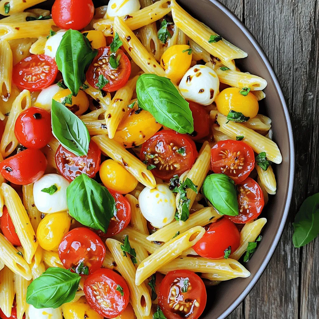 You can boost the flavor of your Caprese Pasta Salad with several tasty additions. Consider adding: