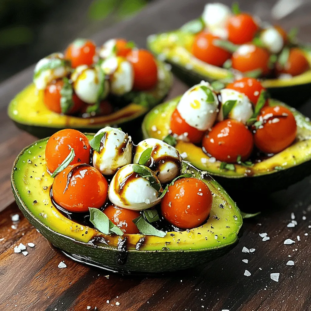 Each ingredient plays a big role in this dish. The avocados are creamy and smooth. They serve as the perfect bowl for the filling. Cherry tomatoes add a sweet and juicy burst. Fresh mozzarella gives a delightful chewiness. Basil brings an aromatic note that brightens the dish. Balsamic glaze adds a touch of sweetness and tang. Olive oil enriches the flavor and helps bind everything.