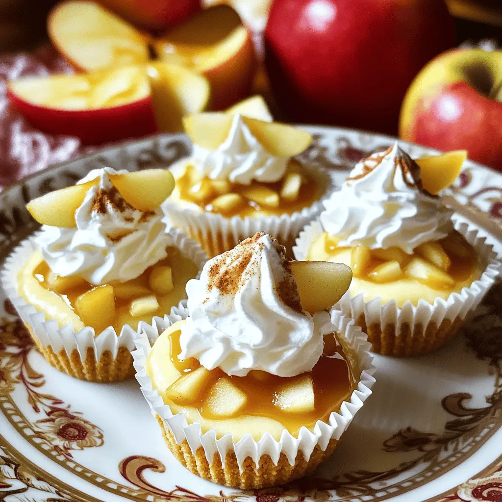 Once the mini cheesecakes are cool, drizzle caramel sauce on top. Refrigerate them for at least 2 hours. Serving them cold enhances the flavors. When ready to serve, add whipped cream, a sprinkle of cinnamon, and extra apple slices for a beautiful touch. Arrange them on a decorative plate for a festive look.