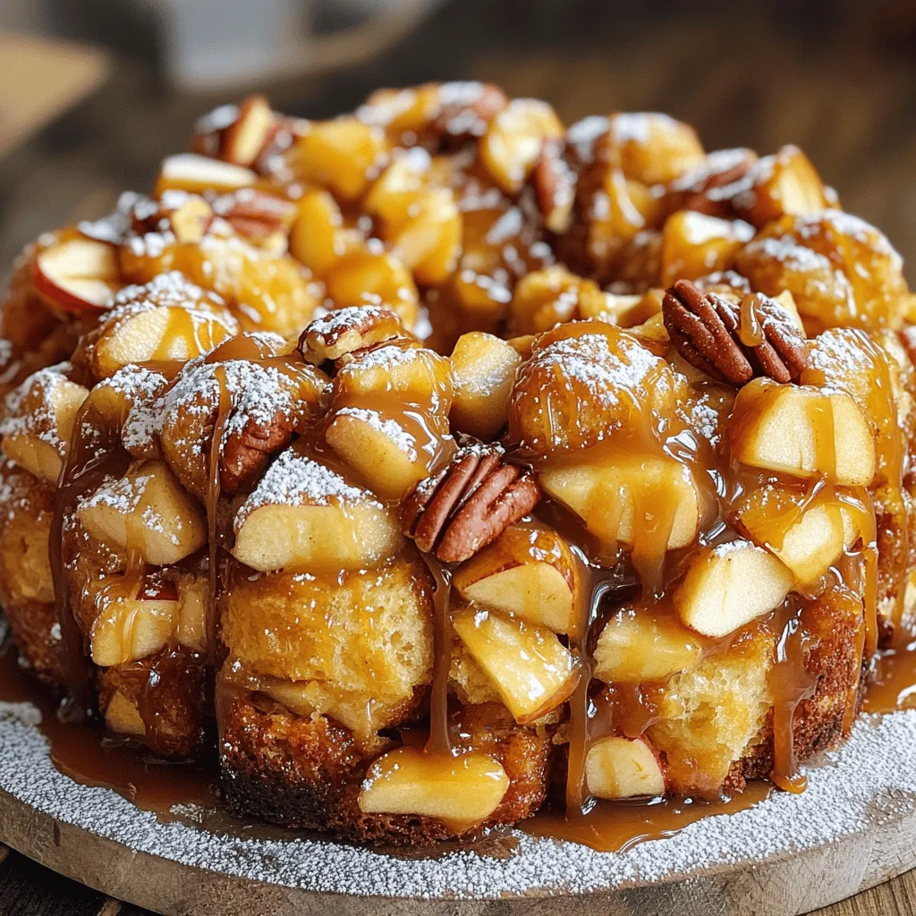 This monkey bread is great on its own, but you can elevate it. Serve it warm with a scoop of vanilla ice cream. The hot bread and cold ice cream create a delightful mix. Another fun idea is to add whipped cream on top. You can sprinkle some cinnamon or nuts for extra crunch. For a more indulgent treat, drizzle extra caramel sauce over each slice. Each of these ideas makes your Caramel Apple Monkey Bread even more special.