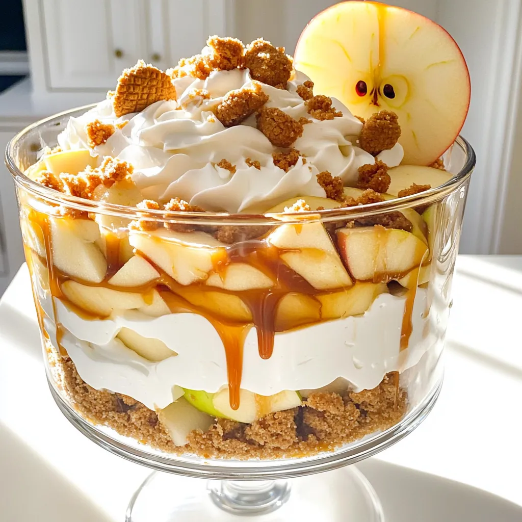 Creating appealing layers makes your trifle stand out. Start with crumbled ginger snap cookies at the bottom. This gives a nice crunch and a flavor boost. Next, add a layer of caramelized apples. Follow this with vanilla pudding and whipped cream. Repeat these layers until your dish is full. Finish with whipped cream on top because it looks great and tastes amazing. To make it even more stunning, drizzle caramel sauce over the top. This adds a beautiful finish and extra sweetness.