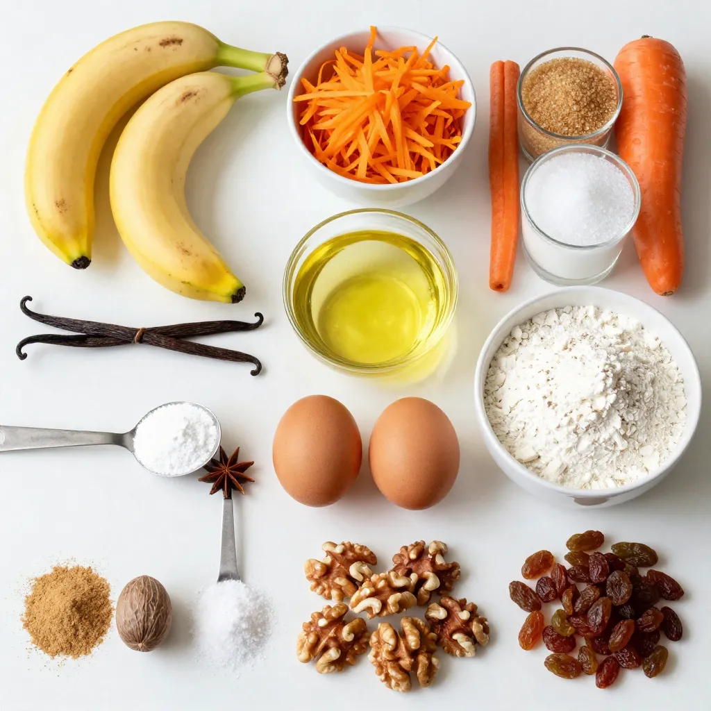 - 2 ripe bananas, mashed - 1 cup grated carrots - 1/2 cup brown sugar - 1/2 cup granulated sugar Ripe bananas and grated carrots are the stars of this recipe. They add natural sweetness and moisture. Bananas also help bind the bread, making it soft. Grated carrots bring a lovely color and flavor, enhancing the cake-like texture. - 1/2 cup vegetable oil - 2 large eggs - 1 1/2 cups all-purpose flour Vegetable oil keeps the bread moist and tender. Eggs provide structure and help it rise. All-purpose flour gives a nice balance to the mix, allowing the other flavors to shine. - 1 teaspoon baking soda - 1 teaspoon baking powder - 1 teaspoon ground cinnamon - 1/2 teaspoon nutmeg - 1/4 teaspoon salt - 1/2 cup chopped walnuts or pecans (optional) - 1/2 cup raisins or currants (optional) Baking soda and baking powder help the bread rise. Ground cinnamon and nutmeg add warmth and depth. You can mix in walnuts or pecans for crunch. Raisins or currants add a sweet surprise in every bite. {{ingredient_image_1}} First, set your oven to 350°F (175°C). This heat makes the bread rise well. While the oven heats, grease a 9x5-inch loaf pan. Use oil or cooking spray to ensure your bread slides out easily. In a large bowl, mash 2 ripe bananas. Add 1 cup of grated carrots. Next, mix in 1/2 cup of brown sugar and 1/2 cup of granulated sugar. Pour in 1/2 cup of vegetable oil. Crack in 2 large eggs and add 1 teaspoon of vanilla extract. Stir until everything is well mixed and smooth. In another bowl, whisk together 1 1/2 cups of all-purpose flour, 1 teaspoon of baking soda, and 1 teaspoon of baking powder. Add 1 teaspoon of ground cinnamon, 1/2 teaspoon of nutmeg, and 1/4 teaspoon of salt. Whisk these dry ingredients until they are well blended. Now, gently add the dry mix to the wet mix. Stir carefully until just combined. Do not overmix, as this can make the bread tough. If you want, fold in 1/2 cup of chopped walnuts or pecans and 1/2 cup of raisins or currants for extra flavor and texture. Pour the batter into the greased loaf pan, smoothing the top with a spatula. Place your pan in the preheated oven. Bake for 50 to 60 minutes. To check if it's done, insert a toothpick into the center. If it comes out clean, your bread is ready. If not, bake for a few more minutes. Once baked, let the bread cool in the pan for 10 minutes. Then, transfer it to a wire rack to cool completely. For serving, slice the bread and place it on a wooden board. You can sprinkle some cinnamon on top and add a few carrot curls for a nice touch. Enjoy it warm or toasted with cream cheese! To make the best carrot cake banana bread, avoid overmixing the batter. Overmixing can make your bread tough and chewy. Mix just until you see no dry flour. This helps keep it soft. Want to boost flavor? Add nuts and dried fruits. Chopped walnuts or pecans give a nice crunch. Raisins or currants add natural sweetness. These add texture too. Mix them in after you combine the wet and dry ingredients. To keep your banana bread moist, store it properly. Wrap it in plastic wrap or aluminum foil. This helps keep air out. You can also use a sealed container. For longer storage, freeze slices. Just remember to thaw them before you enjoy! Pro Tips Use Ripe Bananas: The riper the bananas, the sweeter and more flavorful your bread will be. Look for bananas with brown spots for the best results. Grate Carrots Finely: For a smoother texture, grate the carrots finely. This helps them blend seamlessly into the bread and enhances the overall moistness. Don’t Overmix: Mix the batter until just combined to avoid a dense bread. Overmixing can lead to gluten formation, which makes the bread tough. Let It Cool: Allow the banana bread to cool completely before slicing. This helps the flavors settle and improves the texture for a better eating experience. {{image_2}} You can make this carrot cake banana bread healthier by using different flours or sugars. For example, try whole wheat flour instead of all-purpose flour. It adds fiber and nutrients. You can also use coconut sugar or maple syrup instead of brown and granulated sugars. This option gives a unique flavor and keeps the bread moist. Get creative with your mix-ins! You can add chopped nuts, like walnuts or pecans, for crunch. If you like dried fruit, consider adding raisins or currants. These add sweetness and texture. For a twist, try adding shredded coconut or even chocolate chips. Each choice brings a new flavor to the bread. If you follow a gluten-free diet, use a gluten-free flour blend. This option works great in this recipe. For vegan options, replace the eggs with flaxseed meal or applesauce. Use plant-based oil instead of vegetable oil. These small changes make the recipe fit different diets while keeping it delicious. To keep your carrot cake banana bread fresh, store it properly. You can choose between two main storage options: the refrigerator or the countertop. - Countertop: This is best for short-term storage. Wrap the bread in plastic wrap or foil. It stays fresh for about 3 to 5 days. - Refrigerator: If you want it to last longer, place it in the fridge. It can last up to a week this way. Just remember that chilling may change the texture slightly, making it a bit denser. Freezing is a great way to save your banana bread for later. To freeze it, follow these steps: 1. Cool the Bread: First, let the bread cool completely. 2. Wrap it Well: Use plastic wrap to tightly cover the bread. Then, place it in a freezer-safe bag or container. 3. Label and Date: Write the date on the bag. This helps you keep track of how long it’s been frozen. To thaw, take it out of the freezer and leave it in the fridge overnight. You can also thaw it at room temperature for a few hours. When you want to enjoy leftover carrot cake banana bread, reheating is key. Here are the best methods: - Microwave: Place a slice on a microwave-safe plate. Heat for about 10 to 15 seconds. Check to see if it’s warm enough. - Oven: Prehea