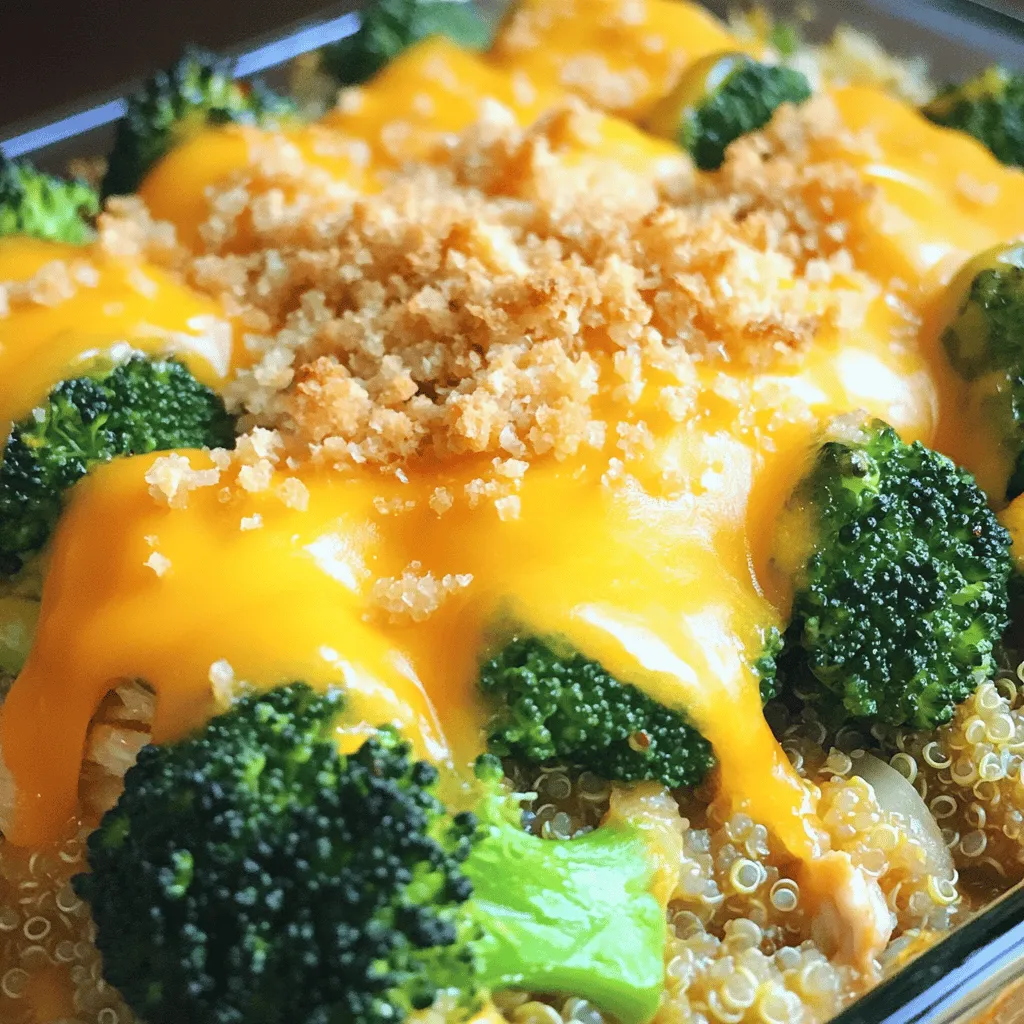 ![- 2 cups cooked chicken, shredded - 4 cups broccoli florets, steamed - 1 cup cooked quinoa (or rice) - 1½ cups shredded sharp cheddar cheese - ½ cup cream cheese, softened - 1 teaspoon garlic powder - 1 teaspoon onion powder - ½ teaspoon paprika - Salt and pepper to taste - ¼ cup breadcrumbs (optional for crunch) - Chicken broth (1 cup) Gathering the right ingredients is key to making the best Cheesy Chicken Broccoli Bake. You will need cooked chicken for protein. Shredded chicken works great because it mixes easily. Broccoli adds a nice color and crunch. Quinoa or rice serves as a filling base. Cheddar cheese is the star here, giving that gooey, cheesy goodness. Cream cheese adds smoothness and flavor. For seasonings, garlic and onion powders bring out the best taste. Paprika adds a hint of warmth. Salt and pepper round out the flavors. If you want a little crunch, consider adding breadcrumbs on top. Using chicken broth in your sauce keeps the dish moist. All these ingredients help create a meal that is both easy and flavorful. For the full recipe, check the section above. - Preheat the oven to 375°F (190°C). - Prepare and steam the broccoli florets until bright green and tender. First, you need to set your oven. The right temperature will help your dish cook evenly. Next, steam your broccoli. This keeps it bright and fresh. You want it soft but not mushy. - Combine shredded chicken, steamed broccoli, cooked quinoa, and half of the cheddar cheese. In a big bowl, mix the shredded chicken with the steamed broccoli. Add the cooked quinoa and half of the cheddar cheese. This mix is the heart of your dish. Make sure it's well combined for even flavors. - Prepare the cream cheese mixture with chicken broth and seasonings. Now, let’s make the sauce. In a different bowl, mix cream cheese with chicken broth. Add garlic powder, onion powder, paprika, salt, and pepper. Stir it well until it's smooth. This sauce will add richness and flavor. - Mix and transfer to baking dish. - Top with remaining cheddar cheese and breadcrumbs. - Bake for 25-30 minutes. Pour the sauce over the chicken and broccoli mix. Stir it all together. Then, transfer everything into a greased baking dish. Spread it out evenly. Top with the rest of the cheddar cheese and if you like, sprinkle breadcrumbs for a little crunch. Bake in the oven for 25 to 30 minutes. You want it bubbly and golden brown. Enjoy your cheesy chicken broccoli bake! For the complete recipe, check out the [Full Recipe]. To make this dish lighter, you can substitute cream cheese with low-fat options. This swap cuts calories while still keeping the creaminess. Another great idea is to use brown rice or cauliflower rice instead of regular rice. Both choices add fiber and nutrients, making this meal even better for you. You can boost the flavor of your Cheesy Chicken Broccoli Bake by experimenting with different types of cheese. Try mozzarella for a milder taste or gouda for a smoky twist. If you like a little heat, add cayenne pepper or hot sauce. A small amount can transform the dish into a spicy delight. When it's time to serve, pair your bake with a fresh salad. The crunch and brightness of the salad balance the richness of the dish. You can also serve it with whole-grain bread. This adds fiber and makes the meal more filling. For the complete recipe, check the link to the Full Recipe. {{image_2}} You can easily make this dish vegetarian. Just replace the chicken with chickpeas or tofu. Both options add protein and flavor. Use vegetable broth instead of chicken broth to keep it plant-based. This swap gives you a rich taste without meat. For a gluten-free version, use gluten-free breadcrumbs or skip them altogether. This dish still tastes great without the extra crunch. You can also replace quinoa with gluten-free grains like rice or millet. These grains work well and keep the dish light. If you love creaminess, try adding a layer of sour cream or Greek yogurt. This twist gives the dish an extra rich flavor. The tanginess from the yogurt pairs well with the cheese. It makes your Cheesy Chicken Broccoli Bake even more delightful. For more ideas, check out the Full Recipe. Store any leftovers in an airtight container. They stay fresh in the fridge for up to 3 days. This keeps the flavors intact and prevents spoilage. To freeze Cheesy Chicken Broccoli Bake, let it cool completely. Then, cover it tightly with plastic wrap and foil. This method protects it from freezer burn. You can freeze it for up to 3 months. To thaw, move it to the fridge overnight. For quick thawing, place it in a warm water bath. The best way to reheat your dish is in the oven. Preheat it to 350°F (175°C). Place the Cheesy Chicken Broccoli Bake in a baking dish. Cover it with foil to keep it moist. Heat for about 20-25 minutes or until hot. You can also use the microwave. Heat it in short bursts, stirring in between, until warm. This helps retain its cheesy goodness. For the full recipe, click here: [Full Recipe]. It takes about 15 minutes to prep and 30 minutes to cook. So, you will spend a total of 45 minutes to serve this tasty dish. This quick time makes it easy for busy days or family gatherings. Yes, you can prepare it a day before. Just mix all the ingredients and put them in the fridge. When you are ready, bake it as usual. This saves time and lets the flavors blend well. You can swap chicken for chickpeas, tofu, or cooked turkey. If you like fish, cooked salmon works too. These options still give you protein and keep the dish tasty. Absolutely! You can portion this dish into containers. It stores well in the fridge for up to three days. Just reheat each portion as needed. This makes it a great choice for easy lunches or dinners. For the full recipe, check out the details above. In this blog post, we covered the ingredients, instructions, and tips for making Cheesy Chicken Broccoli Bake. You learned about the key ingredients like chicken, broccoli, and cheese. I also s