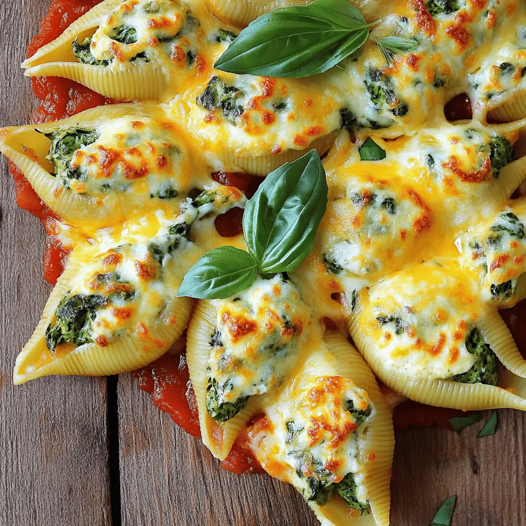 Gathering the right ingredients is key to making Cheesy Spinach Stuffed Shells. You need jumbo pasta shells to hold the filling. Fresh spinach adds a burst of color and nutrients. Ricotta cheese gives a creamy base. Shredded mozzarella cheese melts beautifully on top. Grated Parmesan cheese adds a rich flavor.