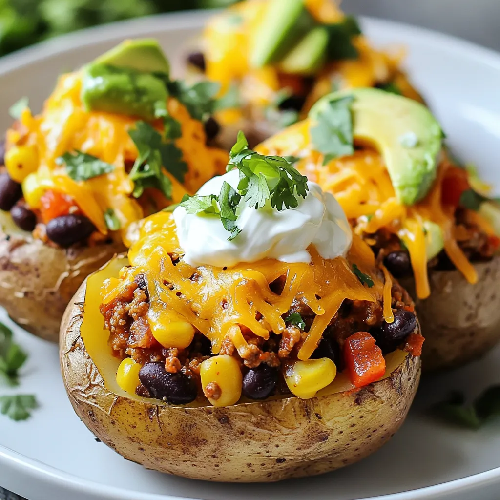 Delicious and hearty stuffed potatoes with a cheesy taco filling.