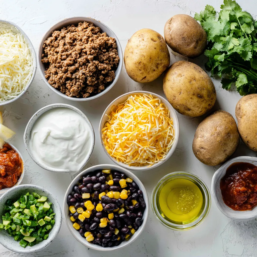 To make Cheesy Taco Potatoes, gather these key ingredients: