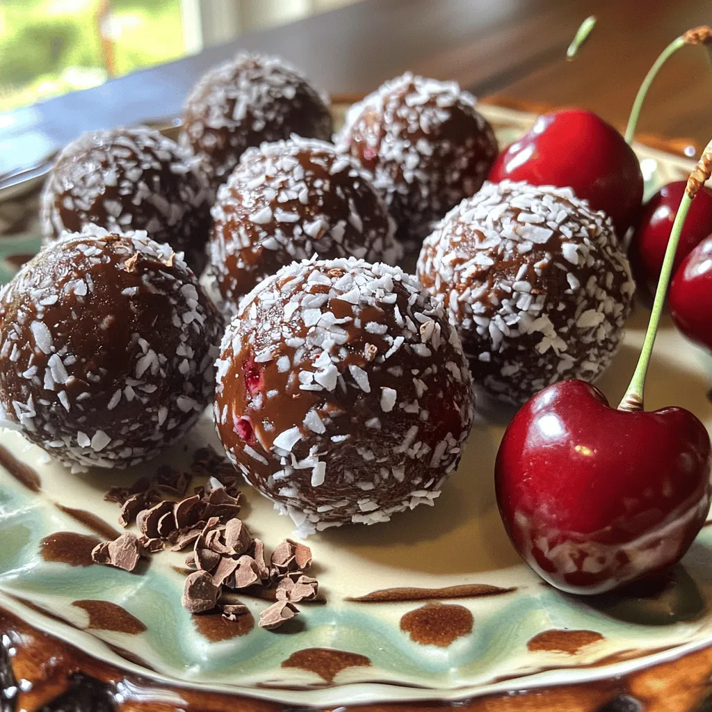 Make your bliss balls shine with simple presentation tricks. Use a lovely plate to display them. Sprinkle extra shredded coconut around the balls. This adds a nice touch. You can also use cacao nibs for a crunchy contrast. For extra color, add fresh cherries on the side. This makes the dish pop and look fresh. Enjoy your beautiful treat!