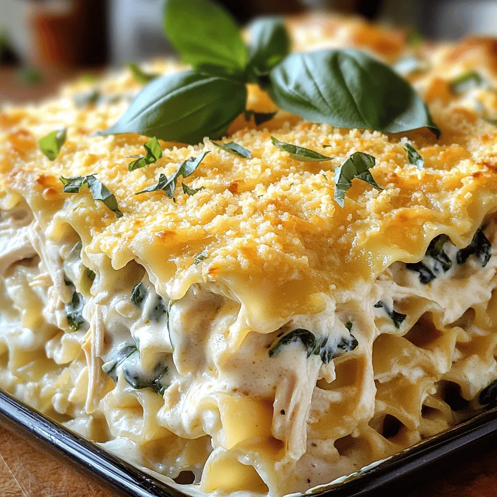 This combination of ingredients makes Chicken Alfredo lasagna a tasty meal for family and friends.
