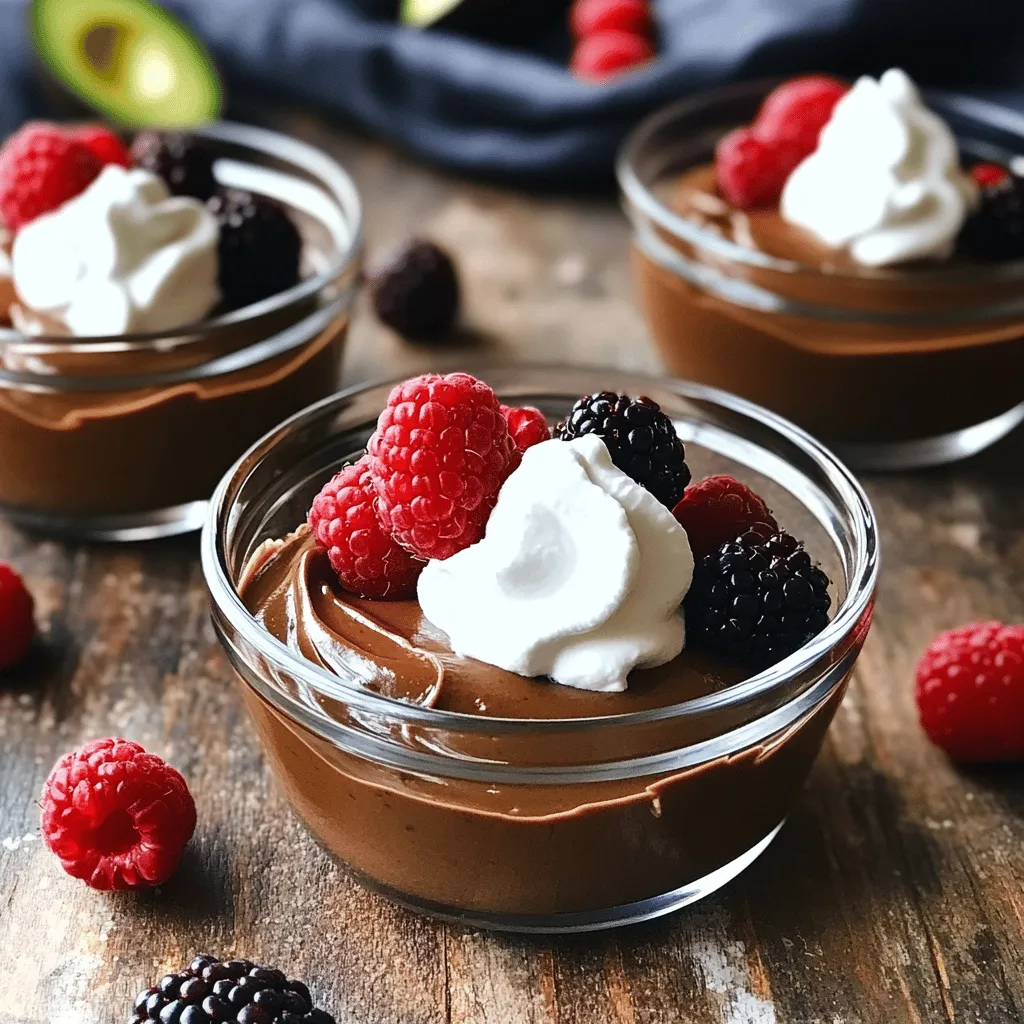 To create this rich and creamy dessert, gather these simple ingredients: - 2 ripe avocados - 1/2 cup unsweetened cocoa powder - 1/3 cup maple syrup (or agave syrup) - 1/4 cup almond milk (or any plant-based milk) - 1 teaspoon vanilla extract - A pinch of sea salt - Optional toppings: whipped coconut cream, fresh berries, or shaved dark chocolate These ingredients work together to make a mousse that is not only delicious but also good for you. If you want to change things up, you can try different sweeteners. Honey works well if you prefer a more natural option. You can also use coconut milk instead of almond milk for a creamier texture. If you need a nut-free option, oat milk is a great choice. Each substitute can add its own unique flavor to the mousse. Avocados are packed with healthy fats. These fats help keep your heart healthy. They also provide fiber, which aids digestion. Using avocado in desserts can lower the sugar content too. This means you get a rich treat without all the guilt. Plus, the creaminess of avocado makes the mousse silky smooth. Enjoying this dessert means you get to indulge while still being mindful of your health. To make this mousse, start with ripe avocados. Cut them in half and take out the pits. Scoop the green flesh into your food processor. Add in the unsweetened cocoa powder, maple syrup, almond milk, vanilla extract, and a pinch of sea salt. Blend everything until it’s smooth and creamy. You might need to scrape the sides to mix well. Taste your mousse. If you want it sweeter, add more maple syrup. Once it’s perfect, place the mousse into small bowls. For a rich and creamy texture, use ripe avocados. The riper they are, the smoother the mousse. Blend on high speed to avoid any lumps. If you notice any, blend a little longer. You can also add more almond milk if the mousse feels too thick. A smooth blend gives the best mouthfeel. Chill the mousse in the fridge for at least 30 minutes. Chilling helps the flavors blend together and the mousse to set. It also makes the mousse cool and refreshing. If you skip this step, the mousse may taste different. Remember, a good chill adds to the overall enjoyment of the dessert. To make the best mousse, start with ripe avocados. Ripe avocados are soft and creamy. Cut them in half and remove the pit. Scoop out the flesh and place it in your food processor. Blend on high until smooth. If you notice lumps, stop and scrape down the sides. Blend again until you have a silky texture. This step is key for a rich and creamy mousse. Taste your mousse after blending. You might want it sweeter or richer. To sweeten, add more maple syrup. You can also use agave syrup if you prefer. If you want a richer flavor, add a bit more cocoa powder. Blend again after each addition. Taste again and repeat until you are happy with the flavor. Remember, the taste should be balanced and delicious. Chill your mousse in the fridge for at least 30 minutes. This helps it set and enhances the flavor. When ready to serve, scoop the mousse into small bowls. For a lovely touch, add whipped coconut cream on top. Fresh berries or shaved dark chocolate make great toppings too. You can also add a mint leaf for color. Serve it to impress your friends and family. For the full recipe, check out the details above. {{image_2}} You can make this mousse even more exciting by adding flavor. Try mixing in fresh mint for a cool twist. Just a few mint leaves can brighten the mousse. Coffee lovers can add a bit of instant coffee for depth. A dash of cinnamon or cayenne pepper can give it a warm kick. Each of these add-ins will change the taste and make it your own. If you're looking for a keto or low-sugar option, you can use a sugar substitute. Erythritol or stevia works well instead of maple syrup. These sweeteners will keep the carb count low while still making it sweet. Choose unsweetened cocoa powder to keep it keto-friendly. Ensure you check the labels on all ingredients to stay within your goals. Toppings can really change how your mousse looks and tastes. Instead of whipped coconut cream, try using Greek yogurt. This adds creaminess and a bit of tang. Fresh fruit like strawberries or raspberries adds color and a juicy bite. Shaved dark chocolate is always a hit, giving a rich finish. Experiment with different toppings to find your favorite look and flavor. For the full recipe, check out the guide above! Store leftover Chocolate Avocado Mousse in a sealed container. This keeps the mousse fresh and tasty. I recommend using glass or plastic containers with tight lids. Avoid letting air in to prevent browning. If you notice any discoloration, just stir it back in before serving. In the fridge, your mousse can last up to three days. After that, the texture and flavor may change. Always check for any off smells or changes in color before enjoying. If it looks good and smells fresh, it should be fine. You can freeze Chocolate Avocado Mousse for longer storage. Use an airtight container or freezer-safe bags. Make sure to leave some space for the mousse to expand. It can last up to two months in the freezer. When you are ready to eat it, thaw it in the fridge overnight. Stir it well before serving to bring back the creamy texture. Enjoy a delicious treat anytime! Yes, Chocolate Avocado Mousse is both vegan and gluten-free! The main ingredients are ripe avocados, cocoa powder, and plant-based milk. You can make this dessert without any animal products. Maple syrup adds sweetness without gluten. This makes it a great choice for many diets. You can definitely add other fruits to the mousse! Bananas work well and add creaminess. You can also mix in berries for a fruity twist. Just remember that the base of the mousse is avocado, so keep that in mind when adding fruits. They can change the flavor and texture, but experimenting is fun! Chocolate Avocado Mousse is rich in healthy fats and nutrients. Each serving of this mousse has around 150 calories. You get fats from avo
