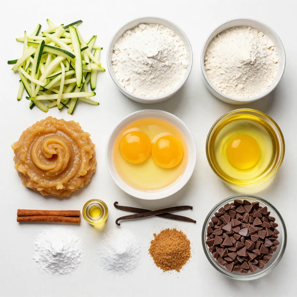 For delicious chocolate chip zucchini muffins, you will need a few simple ingredients. Here’s the list: