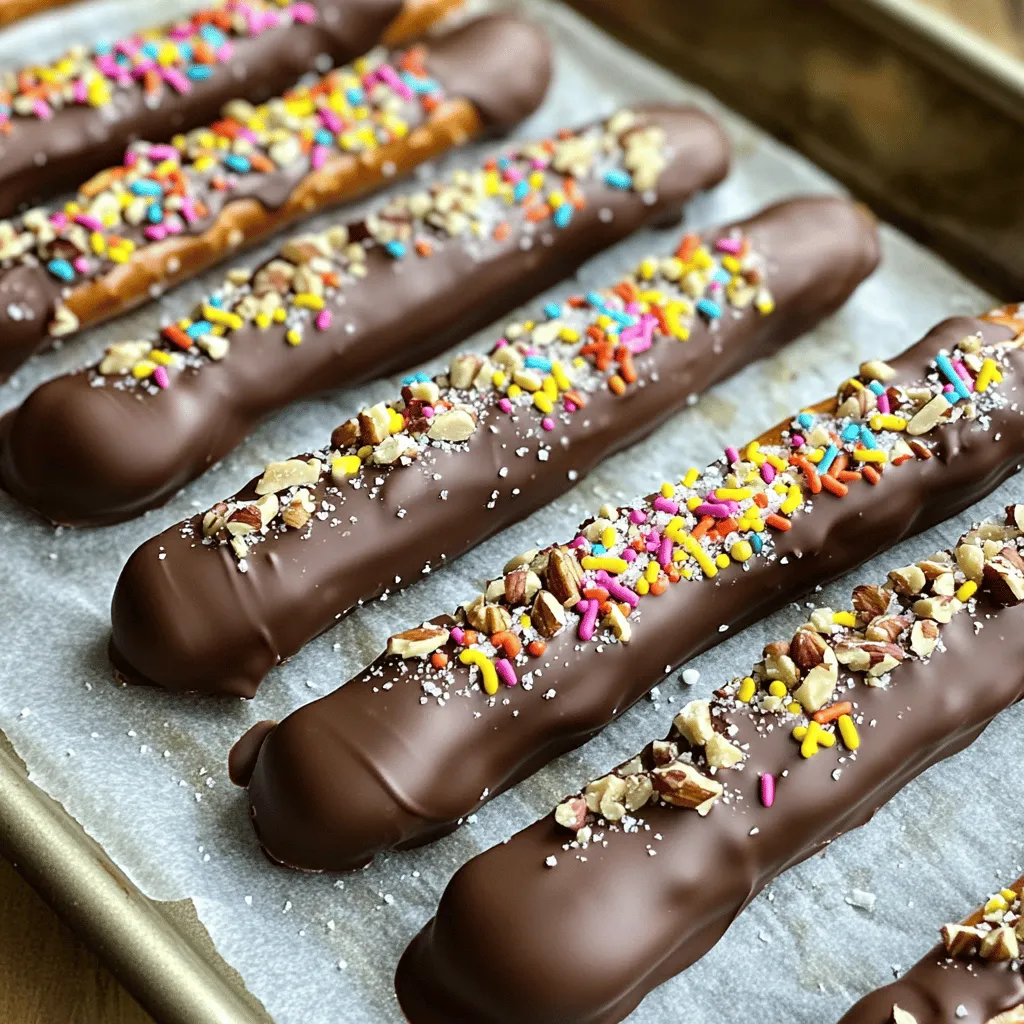 These ingredients create a delightful mix of sweet and salty. The pretzel rods give a nice crunch, while the chocolate adds a rich flavor. You can use different nuts or sprinkles to change things up. Each option brings a unique taste.Enjoy the process as you mix and match your favorite toppings!