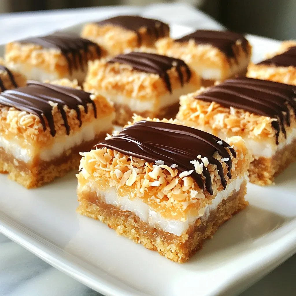 When you present these bars, slice them into neat squares. Arrange them on a nice plate or a wooden board for a rustic look. You can pair these bars with coffee or tea. The rich chocolate and coconut flavors go great with both drinks.