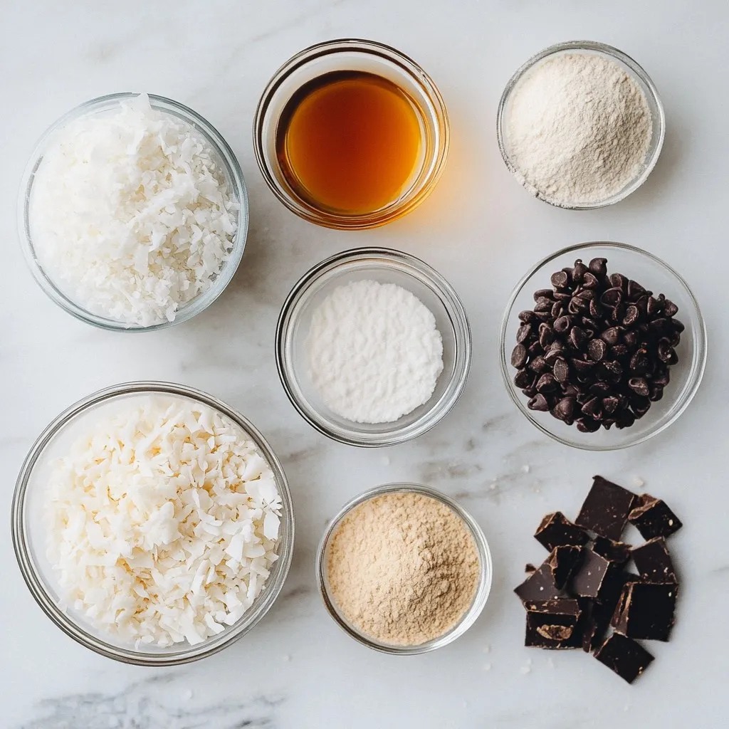 These ingredients come together to create a treat that is both simple and delicious. The unsweetened shredded coconut gives the bars a chewy texture. Almond flour adds a nutty flavor and makes them gluten-free. Maple syrup acts as a natural sweetener, while melted coconut oil binds everything together. Vanilla extract brings warmth and depth to the flavor. The dark chocolate chips and drizzle add a rich finish that makes these bars irresistible.