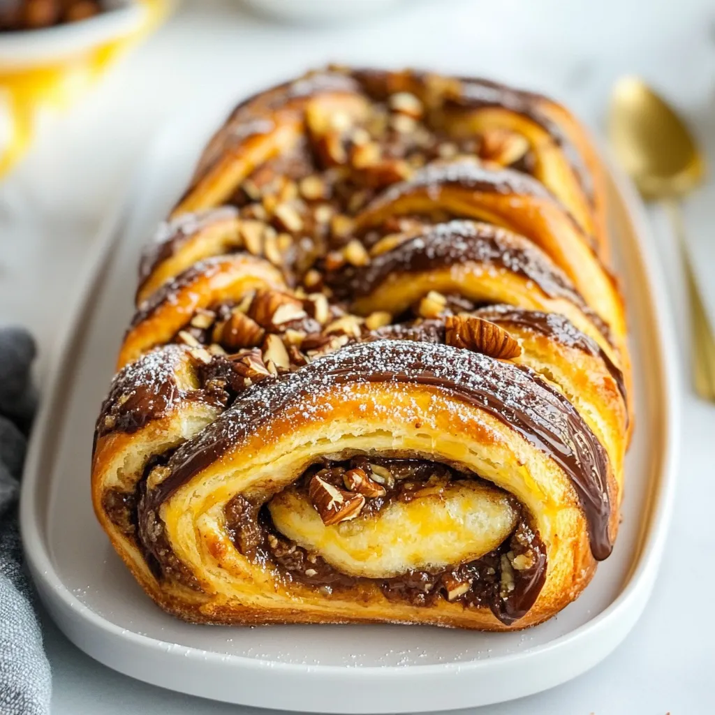 Presentation makes your babka look fancy. A light dusting of powdered sugar adds charm. Serve it with extra chocolate hazelnut spread for dipping. Use a nice platter to make it shine on your table. Your guests will love it!