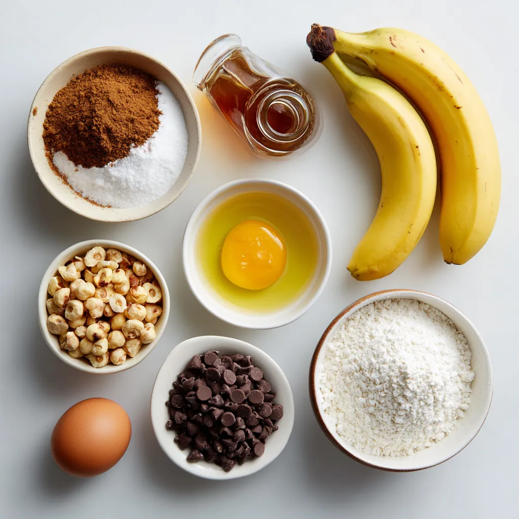 You need baking soda for rising and salt for balance. All-purpose flour helps firm up the bread. Chocolate chips add melty goodness, and toasted hazelnuts give a lovely crunch.