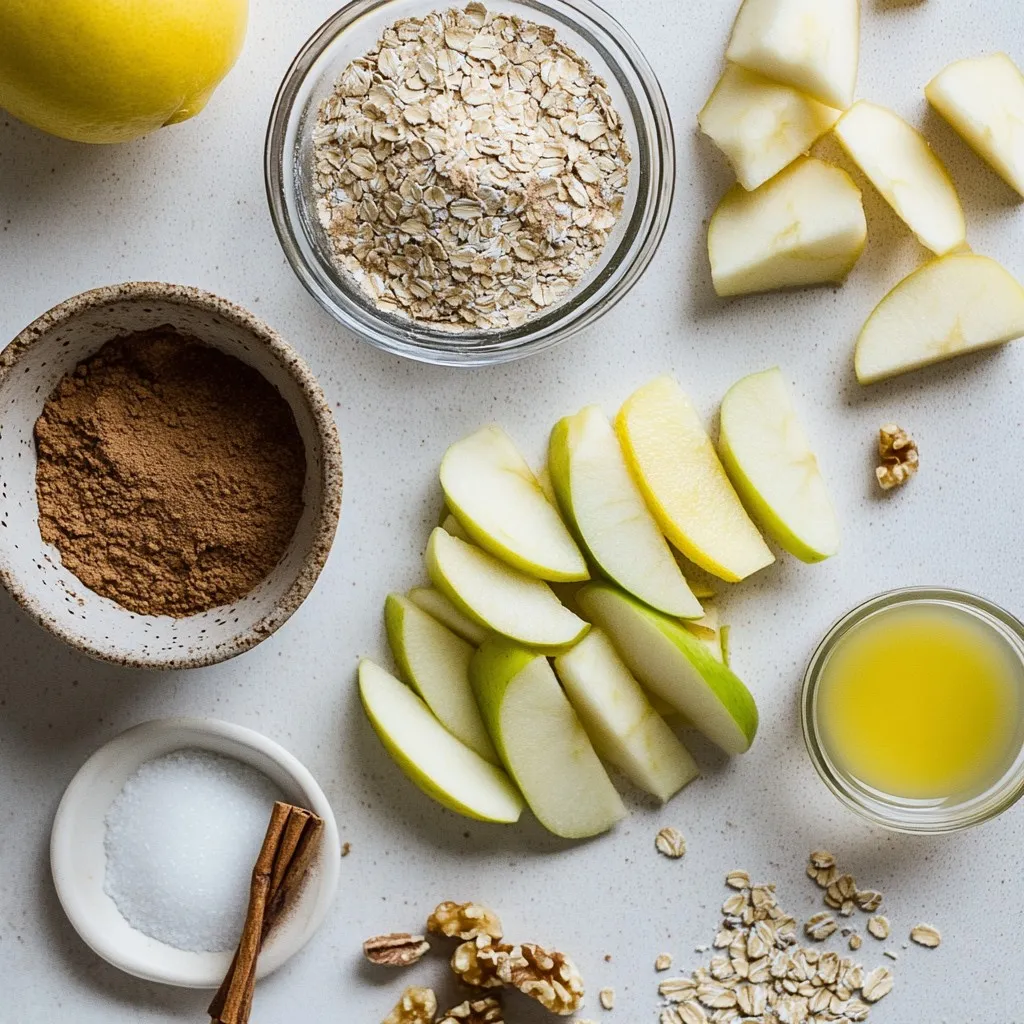 For this delightful cinnamon apple crisp, you need fresh apples. I suggest Granny Smith or Honeycrisp. They give a great tartness and crunch. You will also need lemon juice to brighten the flavors and prevent browning.