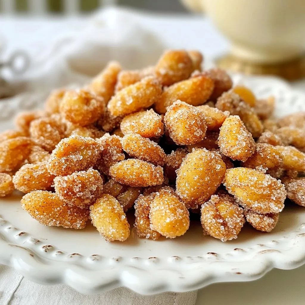 A delightful snack of roasted almonds coated in a sweet cinnamon sugar mixture.