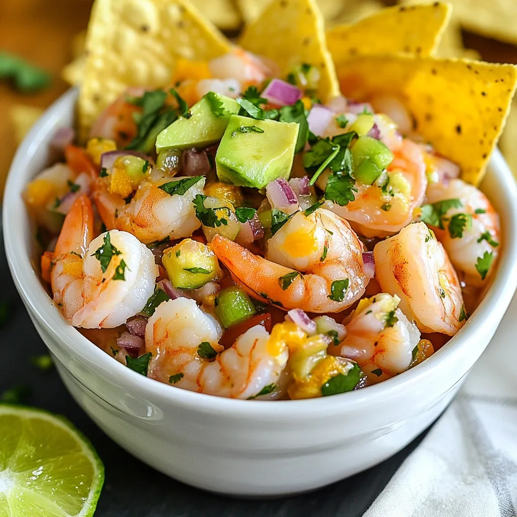 A refreshing shrimp ceviche made with fresh citrus juices and vibrant ingredients.