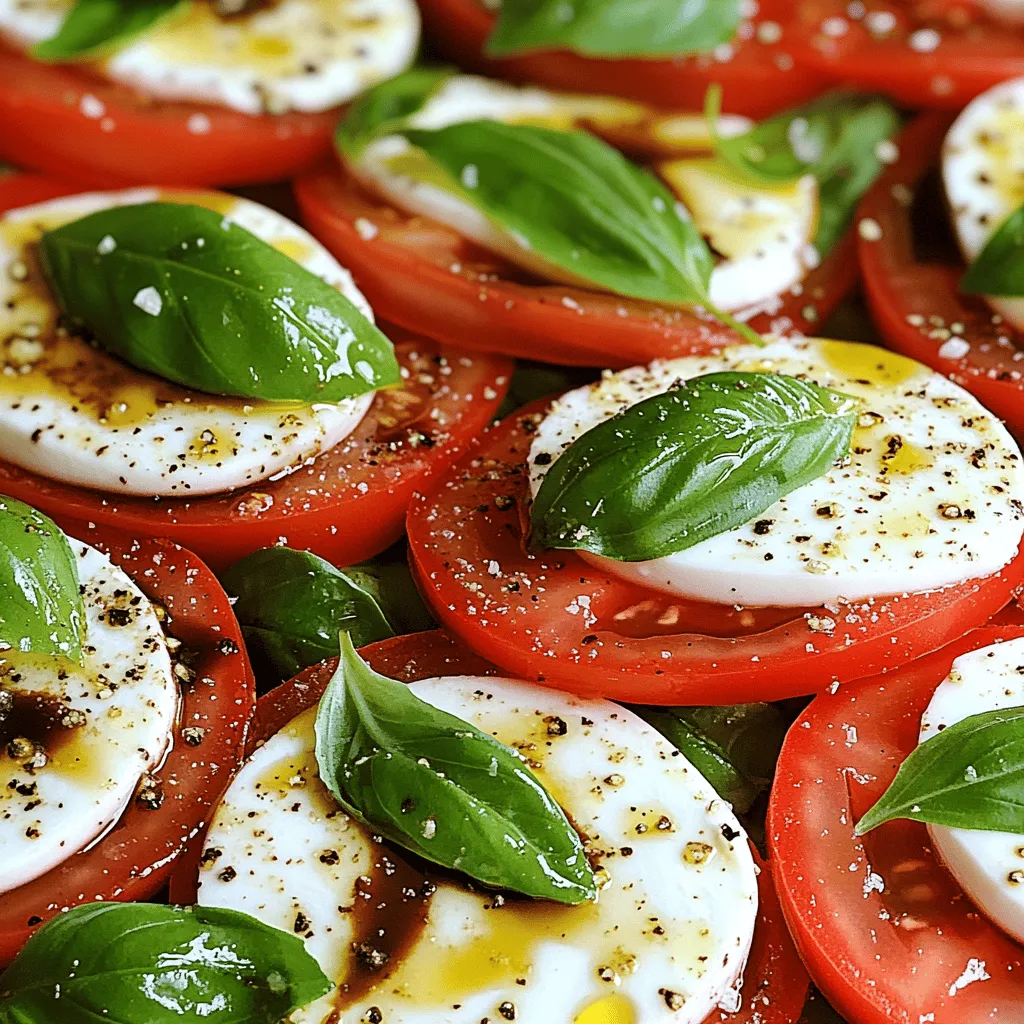 ![- Ripe tomatoes - Fresh basil leaves The key to a great Caprese salad starts with fresh produce. Choose ripe tomatoes that are juicy and sweet. Look for varieties like heirloom or vine-ripened. Their bright colors and rich flavors will elevate your dish. Fresh basil leaves are a must. They add a fragrant herb taste that pairs perfectly with the tomatoes and cheese. - Fresh mozzarella cheese - Olive oil - Balsamic vinegar - Salt and pepper Next, you need fresh mozzarella cheese. It should be creamy and soft, giving a rich taste. Use high-quality olive oil for drizzling. Its fruity notes will enhance the flavors. Balsamic vinegar adds a tangy touch. It brings balance to the salad. Don't forget salt and pepper! They enhance every ingredient's flavor. - Additional herbs - Other toppings You can get creative with optional add-ons. Consider extra herbs like oregano or chives for more flavor. Other toppings like avocados or olives can also add a fun twist. Each choice can change the salad's character. Just make sure to balance new flavors with the classic Caprese style. For the full recipe, check out the [Full Recipe]. To start, take a small saucepan and pour in the balsamic vinegar. Heat it over medium heat. Watch it carefully as it heats. You want it to simmer gently. Stir it occasionally to make sure it doesn’t burn. Let it simmer until it reduces by half. This should take about 8 to 10 minutes. Now, here’s the trick: you know it’s done when it coats the back of a spoon. Once it reaches that perfect consistency, remove it from the heat. Let it cool for a moment before using it in your salad. Next, grab a large serving platter. Begin with your ripe tomato slices. Place a slice of tomato on the platter. Follow it with a slice of fresh mozzarella cheese. Keep layering them. Alternate between the tomato and mozzarella until they fill the plate. This creates a beautiful, colorful pattern. Now, for the fun part—add the basil leaves! Tuck whole basil leaves between the tomato and cheese layers. This adds a fresh taste to each bite. Now it’s time to dress your salad! Drizzle the olive oil over the entire creation. Don’t be shy; the oil adds great flavor. Next, sprinkle some salt and freshly cracked pepper on top. This will enhance the taste of your salad. Finally, take that cooled balsamic reduction. Drizzle it artistically over the salad. This adds a bold flavor and makes the dish look stunning. Enjoy your Classic Caprese Salad with Balsamic Reduction Delight! Choosing the best tomatoes is key for a Caprese salad. Look for ripe, juicy tomatoes. Varieties like heirloom or vine-ripened work great. They should feel heavy in your hand and have a bright color. Avoid any with bruises or wrinkles. Fresh mozzarella is equally important. Pick mozzarella that feels soft and moist. It should come packed in water or whey for the best flavor and texture. If you can, buy it from local markets. The taste is often richer and creamier. Arranging your salad for visual appeal adds to the experience. Start by layering tomato and mozzarella slices in a circle. Alternate them for a beautiful display. Tuck whole basil leaves between the layers. This adds pops of green and aroma. Drizzling the balsamic reduction last gives it that gourmet touch. Serve on a large white plate for contrast. It makes the colors pop and looks inviting. To boost flavor, marinate your tomatoes first. Cut them into slices and sprinkle with salt. Let them sit for 10-15 minutes. This draws out juices and enhances the taste. You can also try alternative seasonings. Consider adding a sprinkle of crushed red pepper for heat. Fresh herbs like oregano or thyme can add depth. Experiment and find what you love. Each twist makes your salad unique. For the full recipe, check it out [here](#). {{image_2}} You can make your Caprese salad even better by adding extra ingredients. One great option is to include avocados. They add a creamy texture and healthy fats. Just slice them up and layer them with the tomatoes and mozzarella. Another idea is to use different cheeses. While fresh mozzarella is a classic choice, you might try burrata or goat cheese. Each cheese brings its own unique flavor. This twist can change the whole feel of the dish. Spice things up with some heat. You can add jalapeños for a kick. Just slice them thin and layer them in with the other ingredients. This adds a fun surprise for those who love spicy food. Another way to change the flavor is by switching up your oil. Try using flavored olive oils, like garlic or chili oil. This small change can make a big difference in taste. For those on a vegan diet, you can easily make this salad vegan. Just skip the cheese or use a plant-based cheese alternative. There are many great options available today. If you need a gluten-free dish, you’re in luck! This salad is naturally gluten-free. Just ensure that your balsamic reduction does not contain any added gluten. Enjoy this fresh dish worry-free! To store leftovers, cover the salad tightly and place it in the fridge. Use an airtight container to keep it fresh. The salad tastes best within two days. Tomatoes can lose their flavor over time, so enjoy it soon. If you have leftover balsamic reduction, store it in a small jar. It can last up to a week in the fridge. Make sure it cools completely before sealing the jar. You can freeze balsamic reduction. Pour it into an ice cube tray and freeze until firm. Once frozen, transfer the cubes to a freezer bag. They can last for up to three months. The assembled salad, however, does not freeze well. The texture of the tomatoes and mozzarella changes when frozen. It is best to eat the salad fresh. If you have leftover mozzarella, you can gently reheat it. Place it on a plate and cover with a damp paper towel. Microwave it in short bursts of ten seconds. Monitor closely to avoid melting it too much. The tomatoes, however, should be enjoyed cold. Reheating them can make them mushy. Always drizzle f