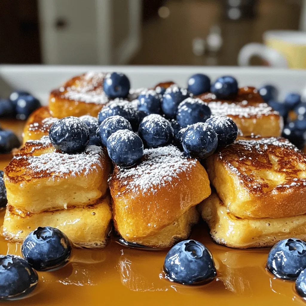 - 1 loaf of brioche or challah bread, cut into 1-inch cubes - 6 large eggs - 2 cups milk (whole or dairy-free) - 1/2 cup heavy cream (or replace with additional milk for a lighter option) - 1/2 cup granulated sugar - 1 tablespoon vanilla extract - 1 teaspoon ground cinnamon - 1/4 teaspoon nutmeg (optional) - 1 cup blueberries (fresh or frozen) - 1/2 cup maple syrup (for drizzling) - Powdered sugar (for dusting) For this recipe, the bread choice is key. I love using brioche or challah bread because they are soft and sweet. They soak up the egg mixture well and create a rich texture. Using eggs and milk makes the base creamy and delicious. The sugar adds sweetness, while cinnamon and nutmeg give it a warm touch. Blueberries add a fruity burst, making every bite special. - Maple syrup and powdered sugar - Fresh fruits and whipped cream Toppings can elevate your dish. I suggest drizzling warm maple syrup over the bake. It adds sweetness and flavor. A light dusting of powdered sugar gives a nice finish. You can also add fresh fruits, like strawberries or bananas, for color and taste. Whipped cream can make it feel like dessert. - Dairy-free options - Sugar replacements If you want dairy-free, use almond milk or oat milk instead of regular milk. You can skip heavy cream entirely or swap it with more milk. For sugar, try honey or a sugar substitute, like stevia. These changes keep the taste great while meeting dietary needs. 1. First, preheat your oven to 350°F (175°C). This helps the dish cook evenly. 2. Next, grease a 9x13-inch baking dish with butter or non-stick spray. This keeps the bake from sticking. 3. Now, take your loaf of brioche or challah bread and cut it into 1-inch cubes. 4. Place the bread cubes evenly in the baking dish. Make sure they fit snugly together. 5. Sprinkle 1 cup of blueberries over the bread cubes. You can use fresh or frozen blueberries. 1. In a large mixing bowl, crack 6 large eggs. 2. Add 2 cups of milk, along with 1/2 cup of heavy cream. This adds a rich taste. 3. Next, incorporate 1/2 cup of granulated sugar, 1 tablespoon of vanilla extract, 1 teaspoon of ground cinnamon, and 1/4 teaspoon of nutmeg (if you want). 4. Whisk everything together until smooth. Make sure there are no lumps. 1. Pour the custard mixture evenly over the bread and blueberries. 2. Gently press down on the bread. This helps it soak up the custard. 3. Cover the dish with aluminum foil and let it rest in the fridge for at least 30 minutes. If you can, let it sit overnight for the best flavor. 4. When you are ready to bake, remove the foil. 5. Place the dish in the preheated oven and bake for 30 minutes. It should look golden brown and puffed. 6. When it's done, take it out and let it cool for 5-10 minutes. You can find the full recipe [here](#). Soaking your bread is key for great texture. Aim for a soak time of at least 30 minutes. This allows the bread cubes to absorb the custard fully. For even better flavor, try using almond milk or coconut milk instead of regular milk. You can also add a splash of orange juice for a citrus twist. To ensure even baking, cover the dish with foil for the first half of baking. This keeps moisture in and helps the bread cook through. After 15 minutes, remove the foil to let the top get golden brown. Check for doneness by inserting a knife in the center. If it comes out clean, you’re ready to serve. When serving, drizzle with warm maple syrup for added sweetness. You can dust with powdered sugar for a fancy touch. Arrange fresh berries on the side to make the plate pop. For a fun twist, add some whipped cream on top right before serving. This adds both flavor and a nice look. {{image_2}} You can make your classic French toast bake even better with fun flavors. Adding fresh fruits like strawberries or bananas brings bright taste and color. You can also use flavored extracts. Almond or orange extracts can add a nice twist to your dish. Want to try something new? Make it savory! You can mix in cheese and herbs like thyme or chives for a unique flavor. Adding bacon or sausage gives it a hearty touch. These changes make the dish perfect for brunch or a cozy dinner. Switching up the bread can change the whole dish. You can use sourdough or whole-grain bread for a different texture and taste. Artisan breads like focaccia also work well. Each type of bread adds its own charm to your bake. For the full recipe, check out the Classic French Toast Bake section. After cooking, let your French toast bake cool. Place leftovers in an airtight container. It keeps well in the fridge. Store it for up to three days. This way, you can enjoy it later without losing flavor. You can freeze your French toast bake before or after baking. If you freeze before, wrap it tightly in plastic wrap. Then put it in a freezer-safe bag. It can last up to two months. If you freeze after baking, let it cool first. Wrap it well and store it. To thaw, move it to the fridge overnight. This helps keep the texture nice. You can also thaw it in the microwave on low. Reheat leftovers in the oven for the best taste. Preheat the oven to 350°F (175°C). Place the French toast bake in a baking dish. Cover it with foil to keep moisture in. Heat for about 15-20 minutes. If you’re short on time, use the microwave. Heat in short bursts of 30 seconds. Check if it's warm enough before serving. This method works but may not keep the crust crispy. Enjoy your Classic French Toast Bake again! For the full recipe, check out the recipe section. You can tell the French toast bake is done when it turns golden brown on top. The edges should look puffy and firm. If the center jiggles too much, it needs more time. A toothpick inserted in the center should come out clean. Yes, you can prepare this dish in advance. I recommend soaking it overnight for the best flavor. To do this, mix the bread and custard, then cover and refrigerate. This allows the bread to soak up all the tasty flavors. If you do not have time for ove