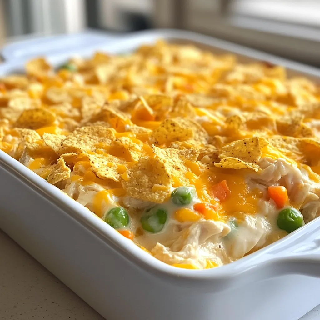 A creamy and cheesy chicken casserole that's easy to make and delicious.