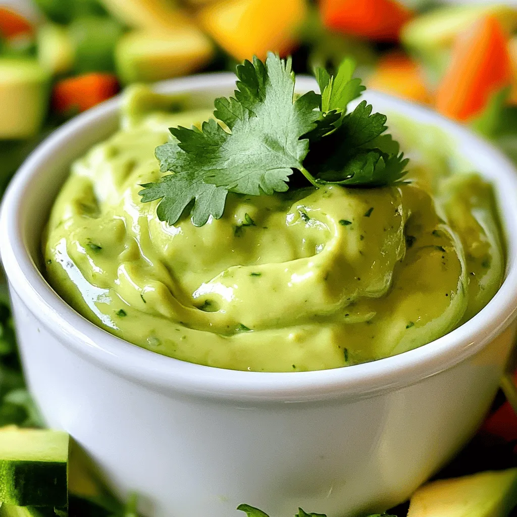 To make creamy avocado cilantro dressing, you need fresh ingredients. The avocado gives a rich texture. Cilantro adds a bright taste that wakes up your dishes. Greek yogurt makes it creamy and adds protein. Lime juice offers a zesty kick that balances the flavor. Olive oil gives a smooth finish. Garlic brings depth, while salt and pepper enhance all the tastes.