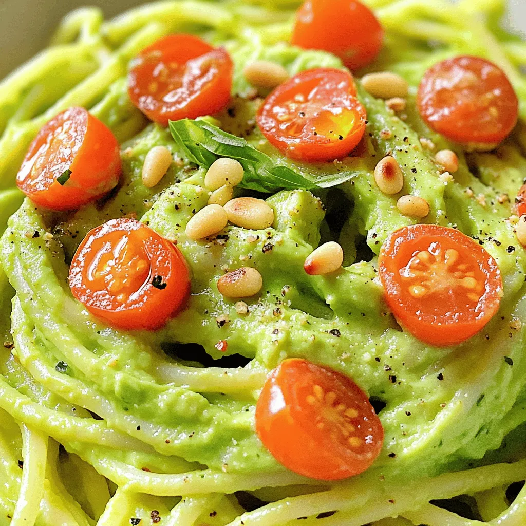 These ingredients create a creamy and rich sauce. The avocados bring a smooth texture. Garlic adds a nice kick. Lemon juice gives a bright flavor. Fresh basil lifts the dish with its herb taste. Parmesan cheese adds depth, but it’s optional. Salt and pepper balance the dish perfectly. Use spaghetti or penne for the pasta. Cherry tomatoes and pine nuts make great toppings. They add color and crunch. This simple list helps you prepare a delicious meal.