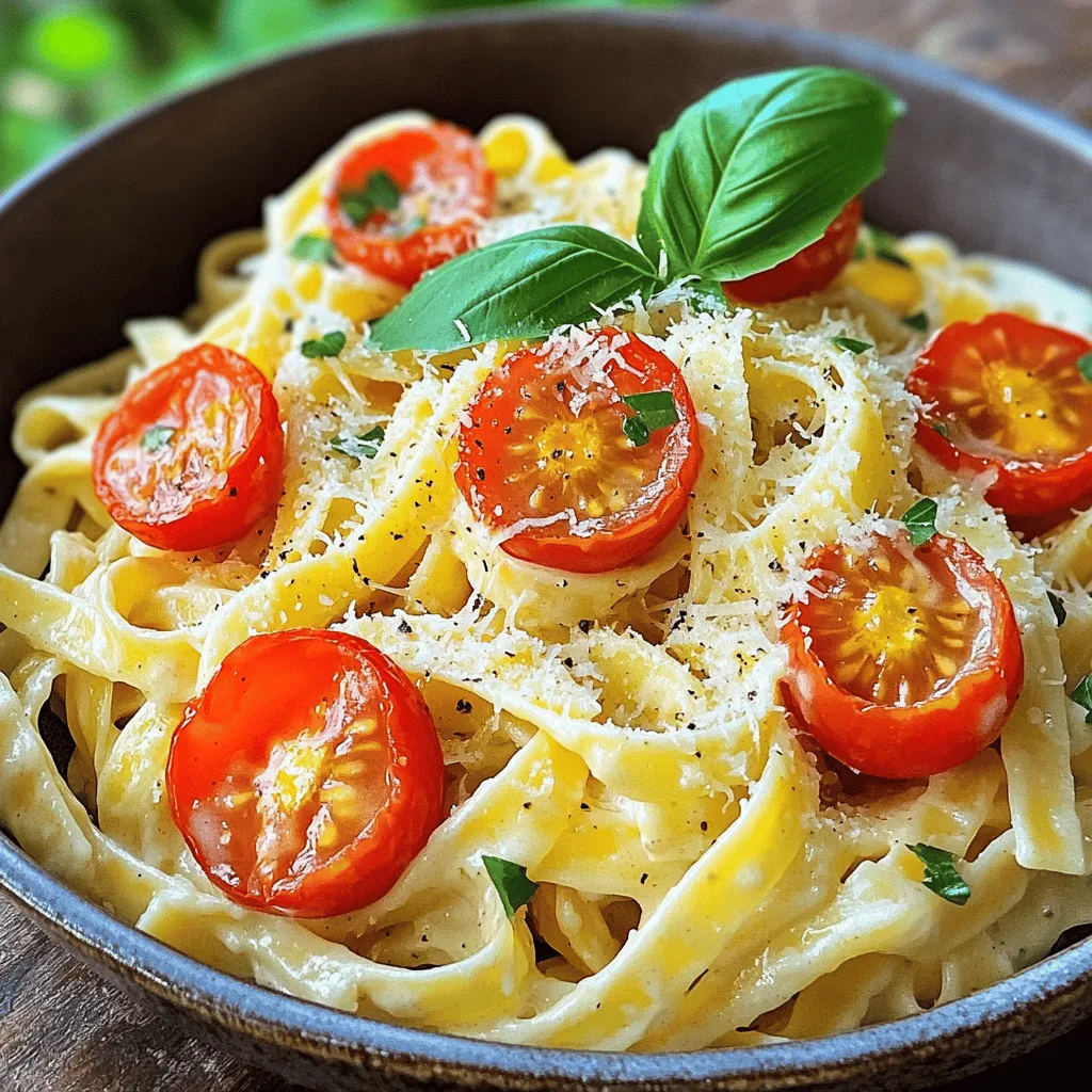 Indulge in this creamy garlic Parmesan pasta recipe that's perfect for any meal! With just a few simple ingredients like fettuccine, fresh basil, and tangy cherry tomatoes, you can whip up a delicious dish in under 30 minutes. Follow the easy steps to create a rich and flavorful sauce that will impress your family and friends. Click through to discover the full recipe and bring a taste of Italy to your kitchen!