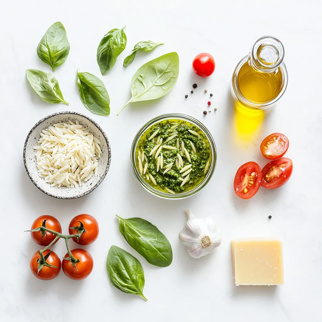 To make the creamy pesto orzo, gather these fresh and simple ingredients: