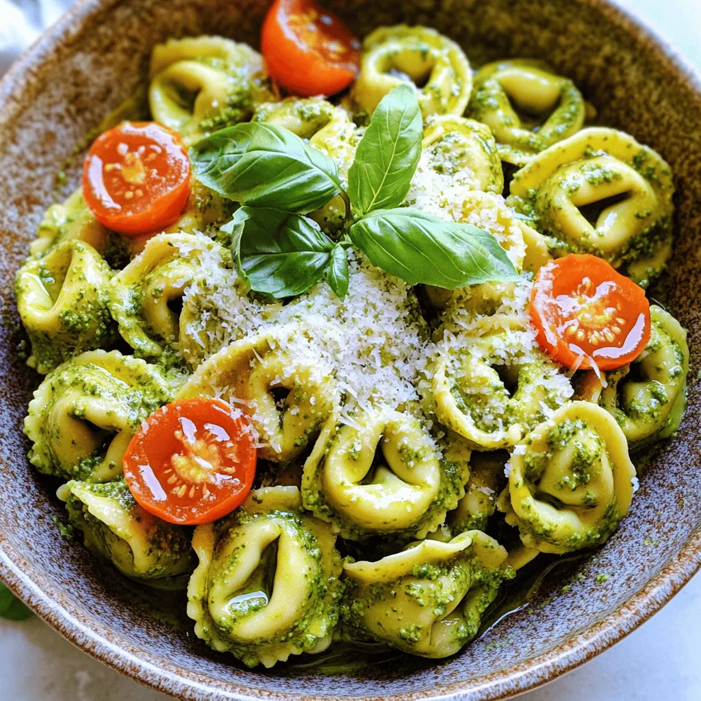 . {{image_2}} Gluten-Free Tortellini Options If you need a gluten-free version, look for gluten-free tortellini at the store. Many brands offer options made from rice or chickpea flour. These alternatives taste great and cook similarly. Vegan Alternatives for Cream and Cheese To make this dish vegan, swap heavy cream with coconut cream or cashew cream. For the cheese, use nutritional yeast or vegan cheese. These swaps give the same creamy texture without animal products. Adding Protein: Chicken, Shrimp, or Tofu You can add protein to make the dish heartier. Chicken or shrimp works well. Just cook them separately and mix them in with the tortellini. For a plant-based option, try tofu. Cube it and sauté until golden for extra flavor. Incorporating Vegetables: Spinach, Peas, or Zucchini Adding veggies boosts nutrition and color. Spinach wilts nicely in the sauce. Peas add a pop of sweetness. Zucchini can be sliced thin and sautéed. Mix any of these in during the final steps to keep them fresh and vibrant. Explore these variations to make your creamy pesto tortellini a new delight every time! Check the Full Recipe for all the details on making this dish. To keep your creamy pesto tortellini fresh, follow these tips. First, let the dish cool down. Then, store it in an airtight container. Always use a container that seals well to prevent air from getting in. You can put it in the fridge right after cooling. How long does it last? Your leftovers will stay tasty for about 3 to 5 days in the fridge. If you want to keep it longer, consider freezing it. In the freezer, it can last for up to 3 months. Just make sure to label the container with the date. When you want to enjoy your creamy pesto tortellini again, reheating is key. The best way to reheat it is on the stove over low heat. This method warms it evenly and keeps the texture nice. Stir often to prevent sticking to the pan. Microwave reheating works too, but it can dry out the dish. If you choose this method, add a splash of cream or water before heating. This keeps the sauce creamy. Always check the temperature before serving. You want it hot but not boiling. Creamy Pesto Tortellini is a rich pasta dish made with cheese-filled tortellini. It mixes fresh basil pesto with cream for a smooth sauce. I love how the flavors blend to create a savory dish that feels fancy yet simple. Yes, you can make Creamy Pesto Tortellini ahead of time. Prepare the tortellini and sauce separately. Store them in the fridge in airtight containers. When you are ready to eat, just combine and heat. This saves time on busy nights. Homemade pesto often tastes fresher and more vibrant than store-bought. You can control the ingredients, like the amount of garlic or cheese. Store-bought pesto is quick and convenient, perfect for busy days. Choose what fits your needs best. To enhance the flavor of the pesto sauce, try adding more cheese or nuts. You can also squeeze in some lemon juice for brightness. Fresh herbs like parsley or spinach can add depth. Experiment to find your favorite combination. For the full recipe, check out the complete guide! This blog covered the basics for making creamy pesto tortellini. We discussed the ingredients, cooking steps, and tips for success. You can try various flavors with substitutions and enjoy it fresh or reheated. Remember, experimenting can lead to new favorites. Each dish can become your own with small changes. Let your taste guide you as you prepare this simple yet delicious meal. Enjoy the process and the tasty results!](https://juliesdish.com/wp-content/uploads/2025/07/ea2feb09-bbb8-4ebe-b5d2-9f0e559a403f-768x768.webp)