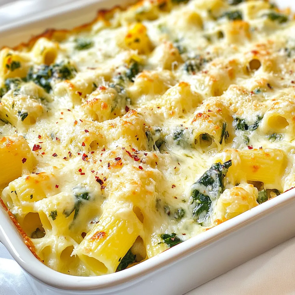 - Comforting Flavor: This creamy pasta bake combines rich cheeses with the earthiness of spinach and artichokes, creating a deliciously comforting dish.