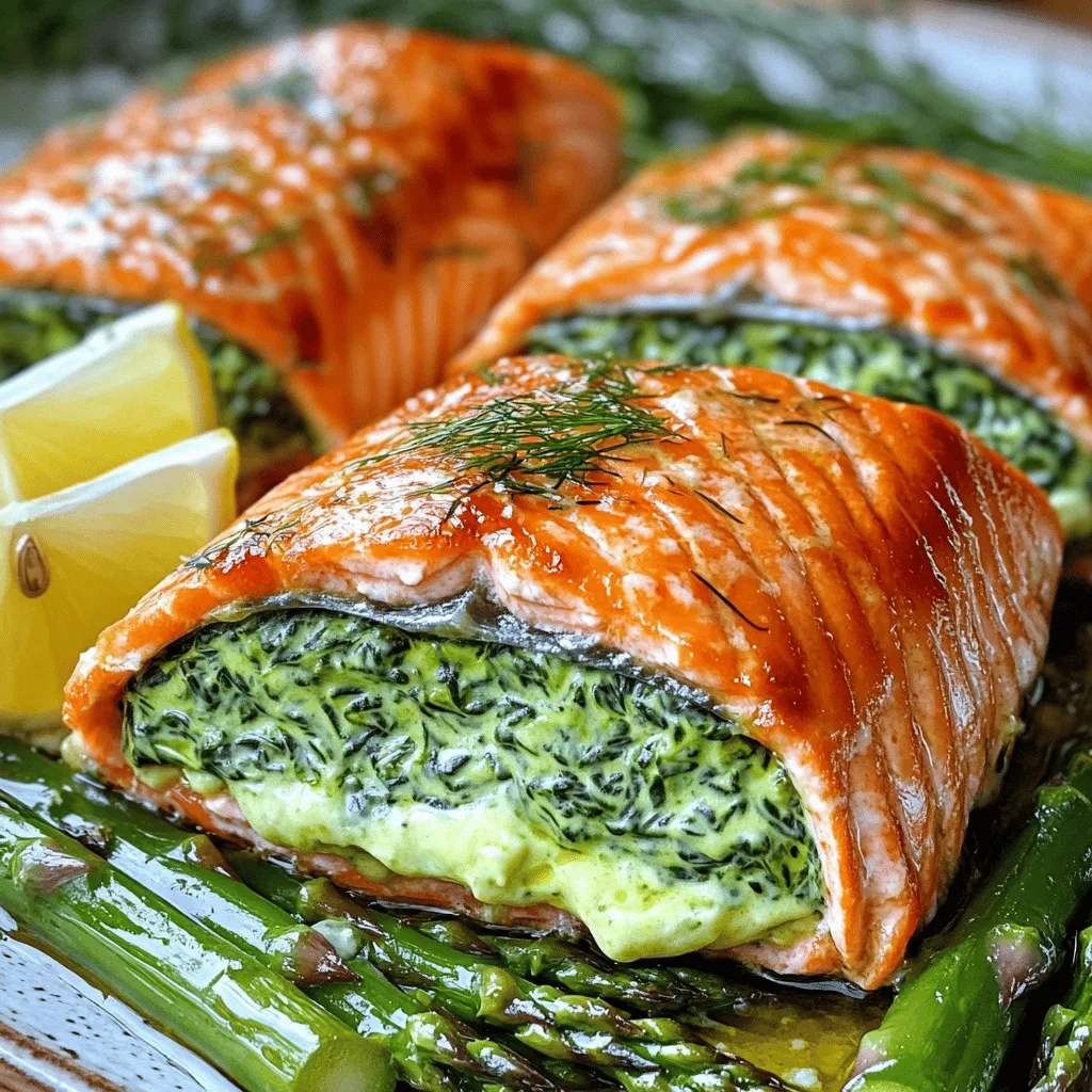 Each ingredient plays a key role in creating a rich and tasty dish. The salmon gives a nice base, while the fresh spinach adds color and nutrition. Cream cheese, sour cream, and Parmesan blend for that creamy filling. Garlic and lemon zest bring in flavor, and dill adds a fresh taste. Don’t forget the salt and pepper to enhance all the flavors. Olive oil helps keep the salmon moist while baking. Finally, lemon wedges make a great garnish and add a zesty kick.