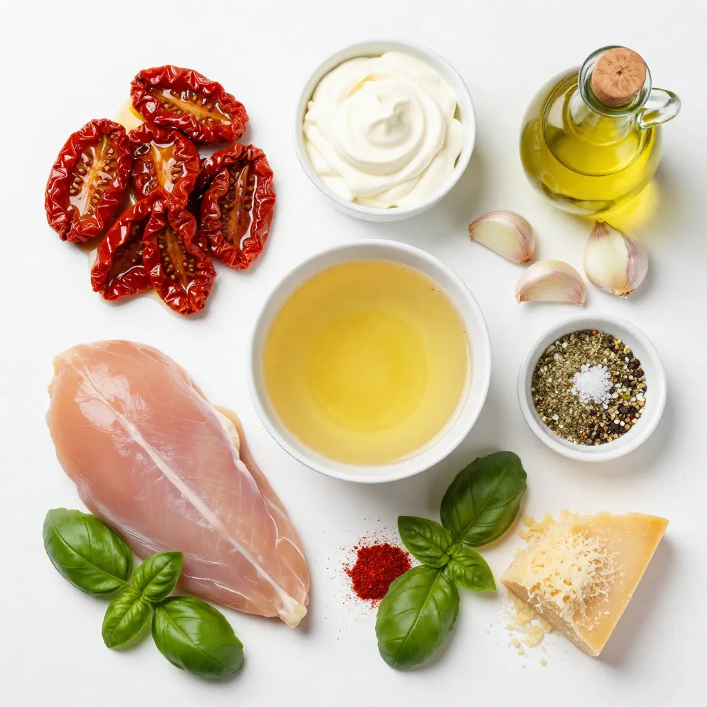 The main ingredients create a rich and creamy dish. The chicken provides protein, while sun-dried tomatoes add a burst of flavor. Heavy cream gives the sauce its creamy texture, and chicken broth brings everything together. Onions and garlic add depth to the dish, while Italian seasoning and paprika enhance the overall taste.