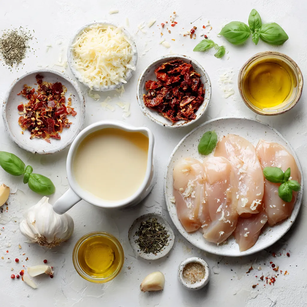 In this creamy sun dried tomato chicken dish, you need a few key ingredients. First, grab four boneless, skinless chicken breasts. These will be the main protein in your meal. Next, you will need one cup of heavy cream. This adds richness and creaminess to the dish. Also, make sure to have half a cup of sun dried tomatoes. They add a nice tangy flavor.