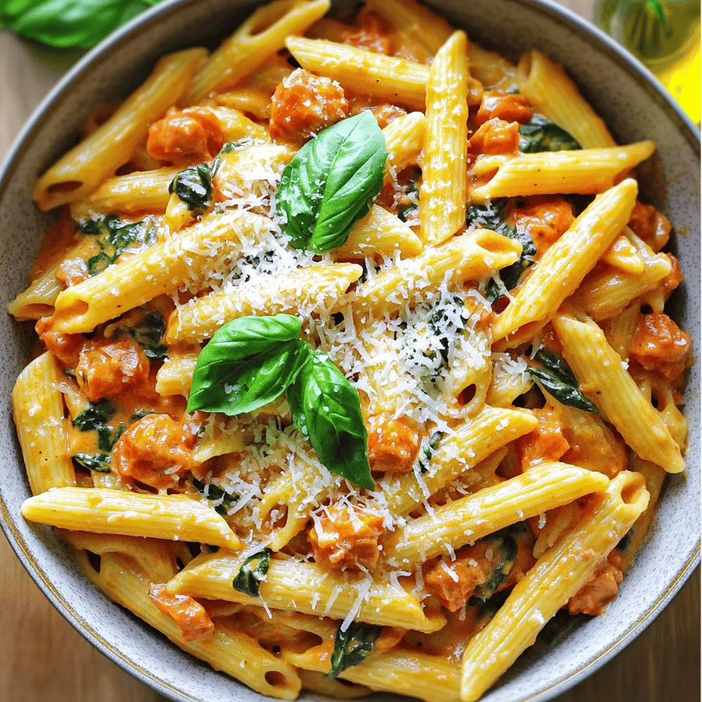 You can make this creamy tomato spinach pasta vegan. Use a dairy-free cream, like coconut or cashew. For cheese, swap Parmesan with nutritional yeast. It adds a cheesy flavor without dairy.