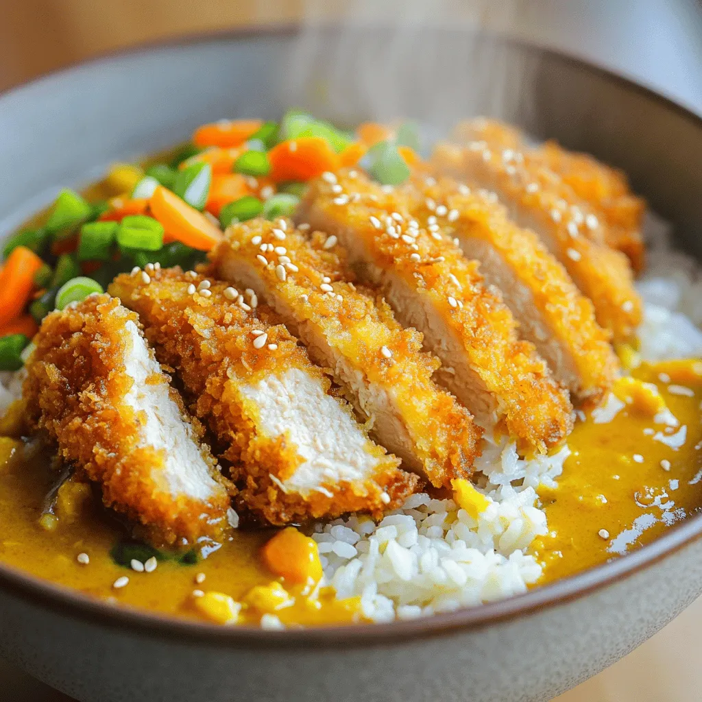 Serve your crispy chicken katsu curry over warm jasmine rice. This rice soaks up the sauce nicely. You can also try serving it with udon noodles for a fun twist. On the side, consider a simple salad with cucumber and radish. This adds crunch and freshness. For a drink, serve with green tea or a light beer. These options complement the flavors perfectly.