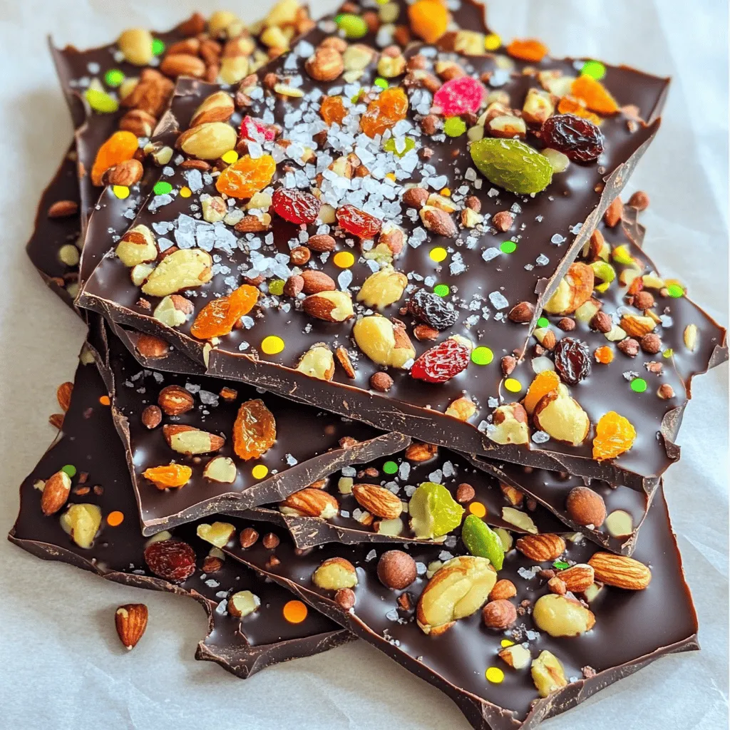To make Dark Chocolate Sea Salt Bark, you need a few key ingredients. First, choose dark chocolate with at least 70% cocoa. This gives the bark a rich taste. Next, grab some mixed nuts like almonds, pistachios, and walnuts. They add crunch and flavor. For sweetness, dried fruits like cranberries, apricots, or cherries work well. They bring a nice contrast to the chocolate.
