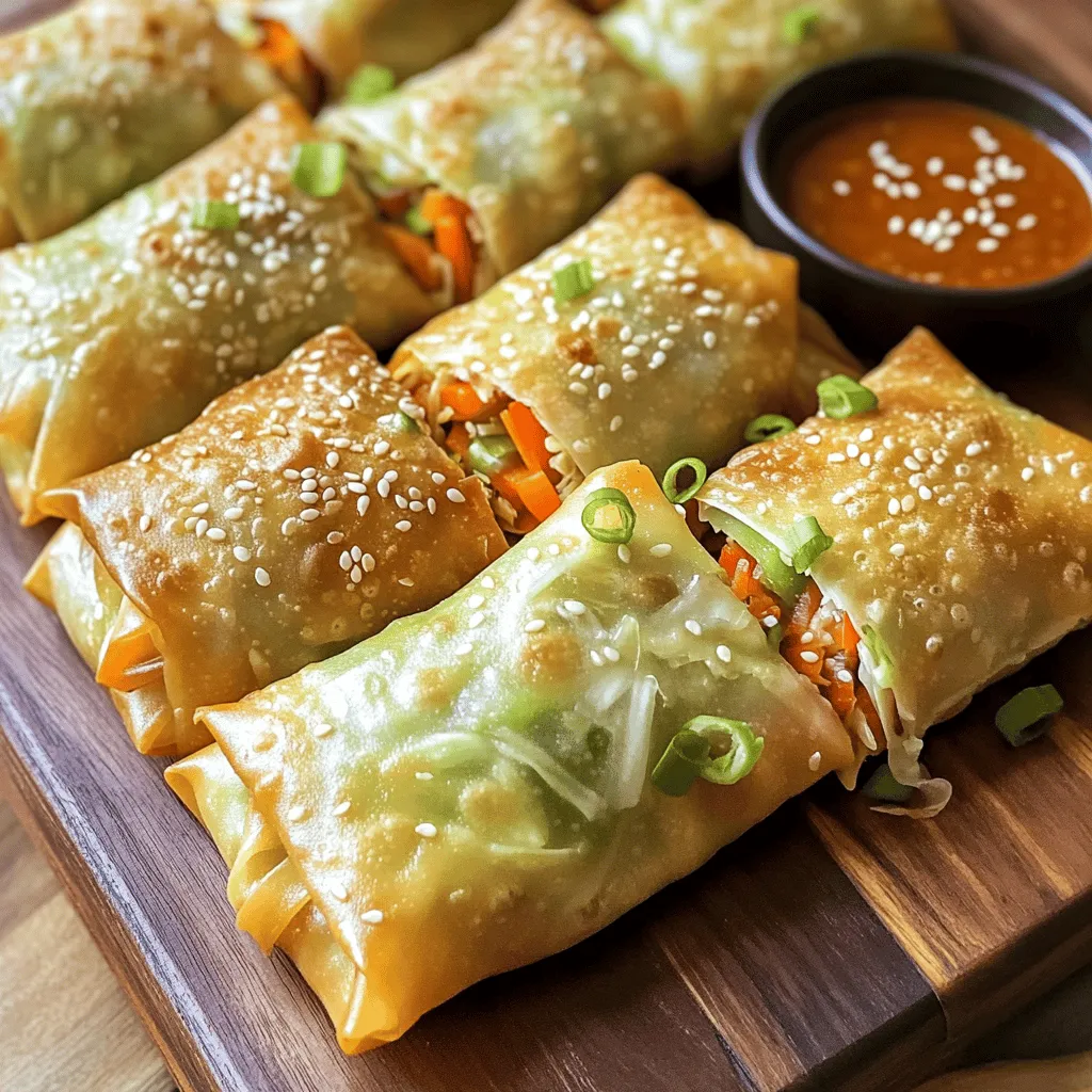 For dipping sauces, I love sweet chili sauce or soy sauce. These add great flavor and a nice touch to your egg rolls. You can also sprinkle sesame seeds and chopped green onions on top for a fun look.