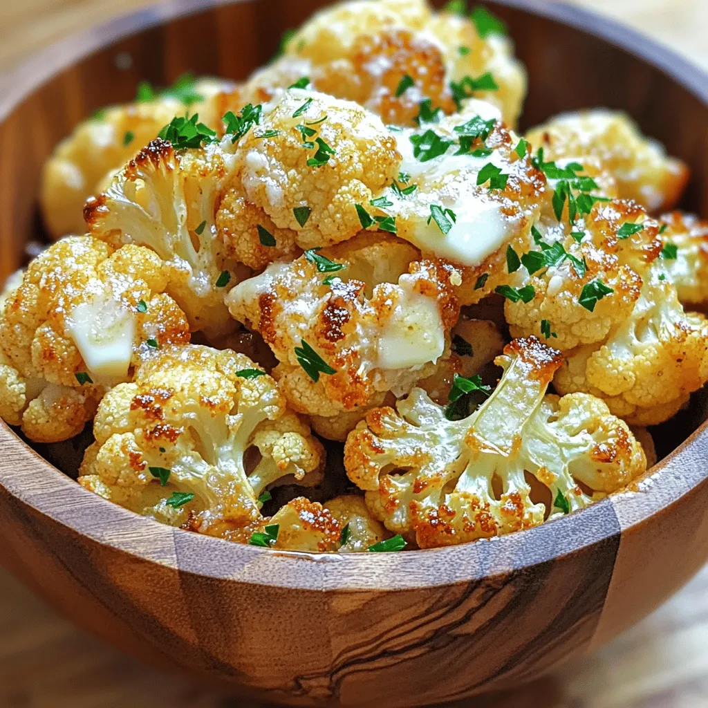 1. Adding parsley for garnish: Once the cauliflower is done, take it out of the oven. Sprinkle chopped fresh parsley over the hot florets. This adds a bright color and fresh flavor.