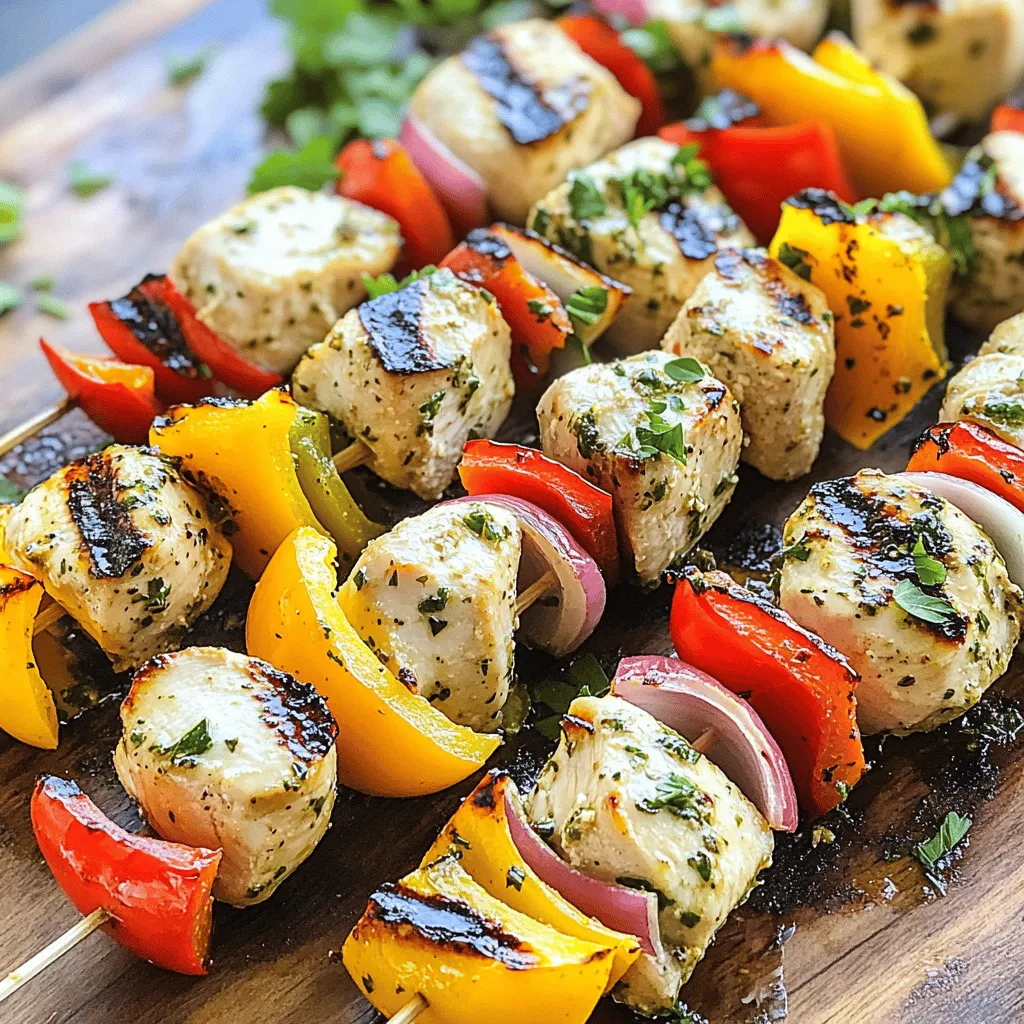 ![- 1 pound boneless, skinless chicken breast - Fresh herbs: parsley, thyme, rosemary - Garlic and seasoning essentials: salt, pepper, and lemon juice To make garlic herb chicken kabobs, start with fresh and high-quality ingredients. The chicken breast is the star here. Boneless and skinless pieces work best. They cook evenly and stay tender. Fresh herbs like parsley, thyme, and rosemary add great flavor. Always use fresh herbs if you can; they make a big difference. Garlic is key in this recipe. It gives a strong and tasty punch. Use four cloves of minced garlic for the best flavor. Lastly, don't forget salt and pepper. They enhance all the other flavors. A splash of lemon juice brightens everything up. - Red bell pepper chunks - Yellow bell pepper chunks - Red onion wedges Now, let’s talk about the vegetables. Red and yellow bell peppers add color, crunch, and sweetness. Cut them into bite-sized chunks. Red onion wedges provide a nice contrast in flavor. They caramelize beautifully on the grill. You can mix and match your veggies. Feel free to toss in zucchini or cherry tomatoes. They work well and add more flavor. Just think about how they will grill together. - Additional vegetables (zucchini, cherry tomatoes) - Marinade variations Looking to change things up? You can create different marinades. Try adding spices like paprika or cumin for a smoky flavor. Just remember, the marinade needs to complement the chicken and veggies. You can also play with the ratios of garlic and herbs to find your perfect taste. For a twist, add some additional veggies to your skewers. Zucchini slices grill up nice, and cherry tomatoes burst with flavor. This adds variety and can make your kabobs even more colorful and fun. For the full recipe and detailed instructions, check out the [Full Recipe]. To start, I prepare the marinade. I mix minced garlic, chopped herbs, and olive oil in a bowl. This blend brings a bright, fresh flavor to the chicken. I add lemon juice, salt, and pepper to enhance the taste. Then, I coat the chicken cubes in the marinade. I cover the bowl and let it sit in the fridge. A good marinating time is at least 30 minutes, but I often let it marinate for up to two hours. This longer time makes the chicken even tastier. Next, I prepare the skewers. If I use wooden skewers, I soak them in water for about 30 minutes. Soaking helps prevent burning on the grill. If I prefer metal skewers, I skip this step. Metal skewers are great because they hold heat well and are easy to reuse. Now, I assemble the kabobs. I take a skewer and start adding the marinated chicken. I like to alternate chicken pieces with colorful chunks of bell peppers and onion wedges. This not only adds flavor but also makes the kabobs look great. I ensure an even distribution of chicken and veggies. This way, every bite has a mix of flavors. It’s time to grill! I preheat my grill to medium-high heat. This temperature is perfect for cooking chicken. I also lightly oil the grill grates to stop sticking. I place the kabobs on the grill and cook them for 10 to 15 minutes. I turn them often to achieve nice grill marks. I check the chicken's internal temperature; it should reach 165°F (75°C) to be safe. Once cooked, I remove the kabobs from the grill. I let them rest for a couple of minutes before serving. This resting time helps keep the chicken juicy. I love to sprinkle fresh herbs on top for added flavor. These kabobs pair well with rice, a fresh salad, or grilled veggies. Enjoying them hot makes the meal even better! For the full recipe, check out [Full Recipe]. To cook chicken kabobs just right, you need to know the internal temperature rule. Always aim for an internal temperature of 165°F (75°C) for safe eating. Using a meat thermometer helps you avoid undercooking or overcooking. To keep the chicken juicy, marinate it well. I suggest marinating for at least 30 minutes. However, letting it soak for up to 2 hours gives even better flavor. This makes the chicken tender and packed with taste. Want to spice things up? You can add cumin or paprika for a smoky kick. If you like a thicker marinade, try adding a spoon of Greek yogurt. This gives the chicken a creamy texture and holds onto the flavors better. When serving kabobs, consider creative plating. You can arrange them on a large platter with fresh herbs. This adds color and makes it look fancy. Dipping sauces also enhance the meal. Try a tangy yogurt sauce or a zesty chimichurri. These options pair well with the garlic herb chicken kabobs. Remember, a good presentation can make your meal more enjoyable. For the full recipe, check out the Garlic Herb Chicken Kabobs section above. {{image_2}} You can change up the protein in garlic herb chicken kabobs. Try using tofu, shrimp, or beef. For tofu, press it to remove extra water. Cut it into cubes and marinate just like chicken. Shrimp cooks fast, so marinate for only 15 minutes. Beef needs a longer marination time of about two hours. - Tofu: Press and cube before marinating. - Shrimp: Marinate for 15 minutes. - Beef: Use a two-hour marination for flavor. If you want a veggie twist, use vegetables and plant-based proteins on your skewers. You can use zucchini, mushrooms, cherry tomatoes, and bell peppers. Mix these with a tasty marinade. A great marinade can include olive oil, lemon juice, and your favorite herbs. This keeps the veggies juicy and bright. - Skewering Ideas: Zucchini, mushrooms, and cherry tomatoes. - Marinade: Olive oil, lemon juice, and herbs. You can change the flavor of your kabobs easily. Use different herbs and spices to keep things exciting. Basil, oregano, or even cumin can add a new taste. You can also try using flavored oils or infused vinegar. These can enhance the dish with a burst of flavor. - Herb Ideas: Basil, oregano, or cumin. - Flavored Oils: Try garlic-infused or chili oil. Experiment with these variations to find your favorite. For the full recipe, check out the Garlic Herb Chicken Kabob