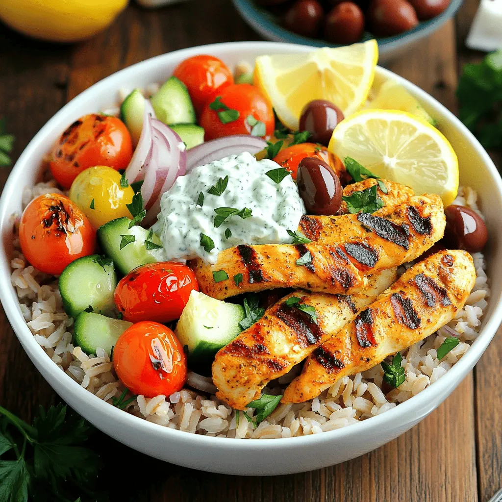 You can switch up the protein in your Greek chicken gyro bowls. Beef or lamb adds a rich flavor. Grilling marinated beef strips or lamb chops can be a tasty twist. If you prefer seafood, grilled shrimp works great. Simply season them with olive oil, lemon juice, and herbs. Tofu is a good choice for a vegetarian option. Marinate it like the chicken for added taste.