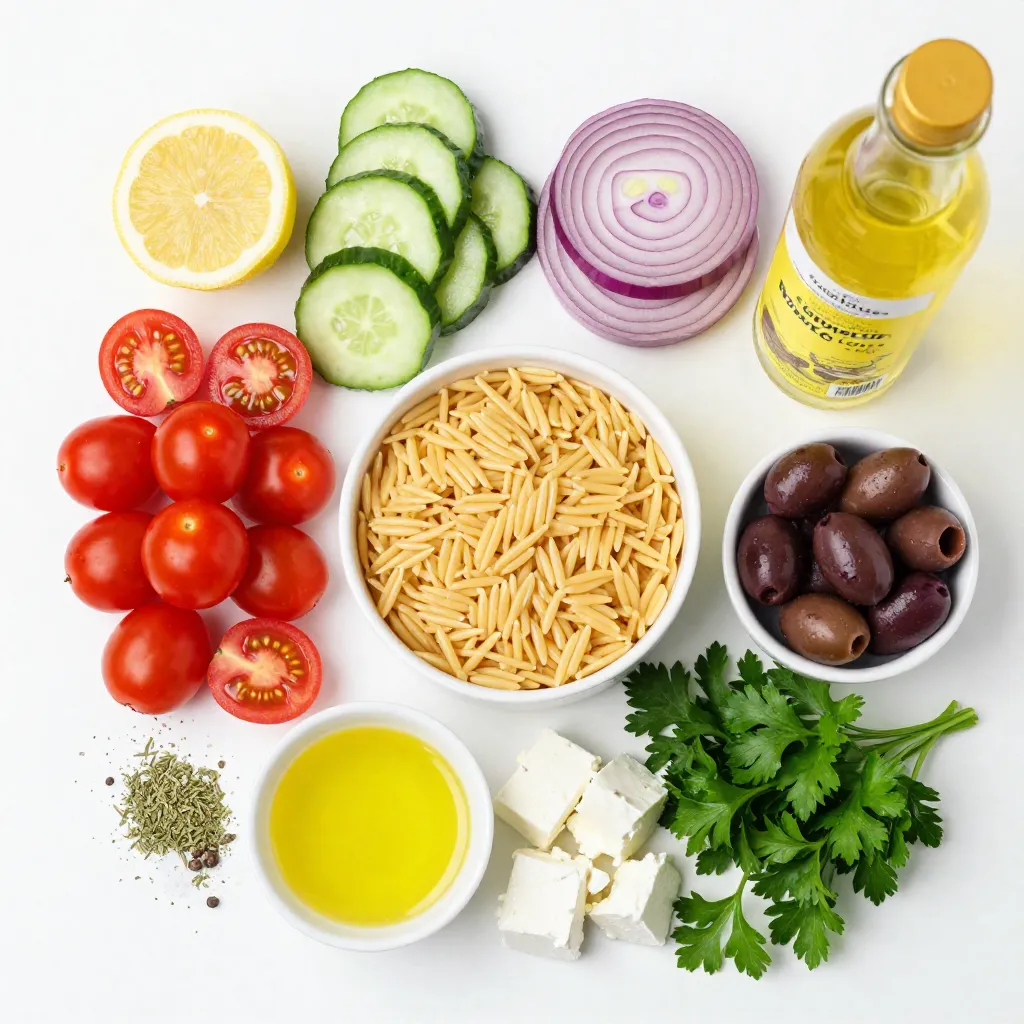 For a tasty Greek Orzo Salad, gather these main ingredients: