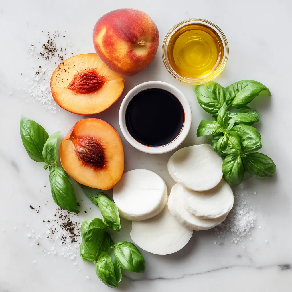 For this Grilled Peach Caprese Salad, you need ripe peaches. They should be soft but firm enough to hold their shape. Fresh mozzarella adds creaminess. Use slices for the best texture. Fresh basil leaves give a bright, herbal note. Balsamic glaze adds sweetness and tang. Olive oil helps the peaches grill well and adds flavor. Donβt forget salt and pepper to enhance all the tastes.