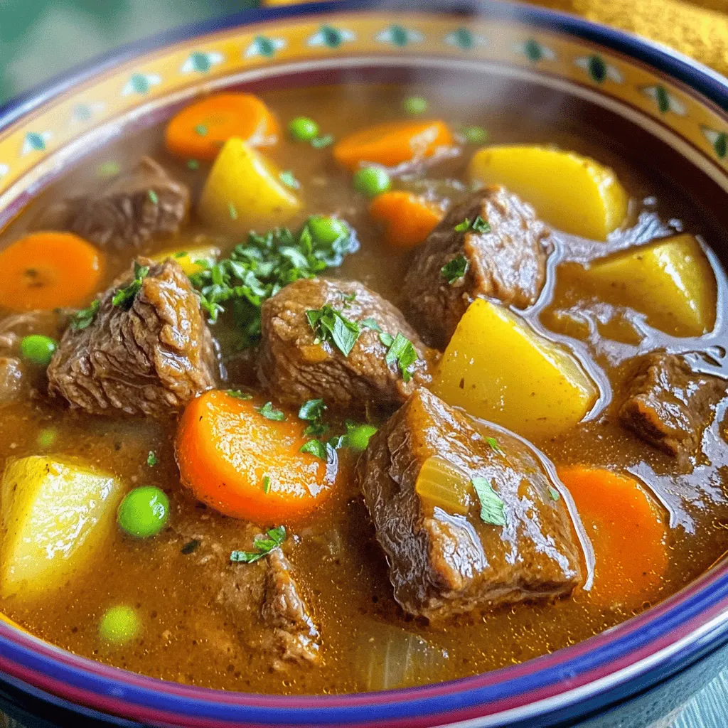 Onions and garlic are my go-to aromatics. They create a base of flavor that makes the stew sing. Carrots and potatoes bring sweetness and heartiness. I love adding peas for a pop of color and extra nutrients.